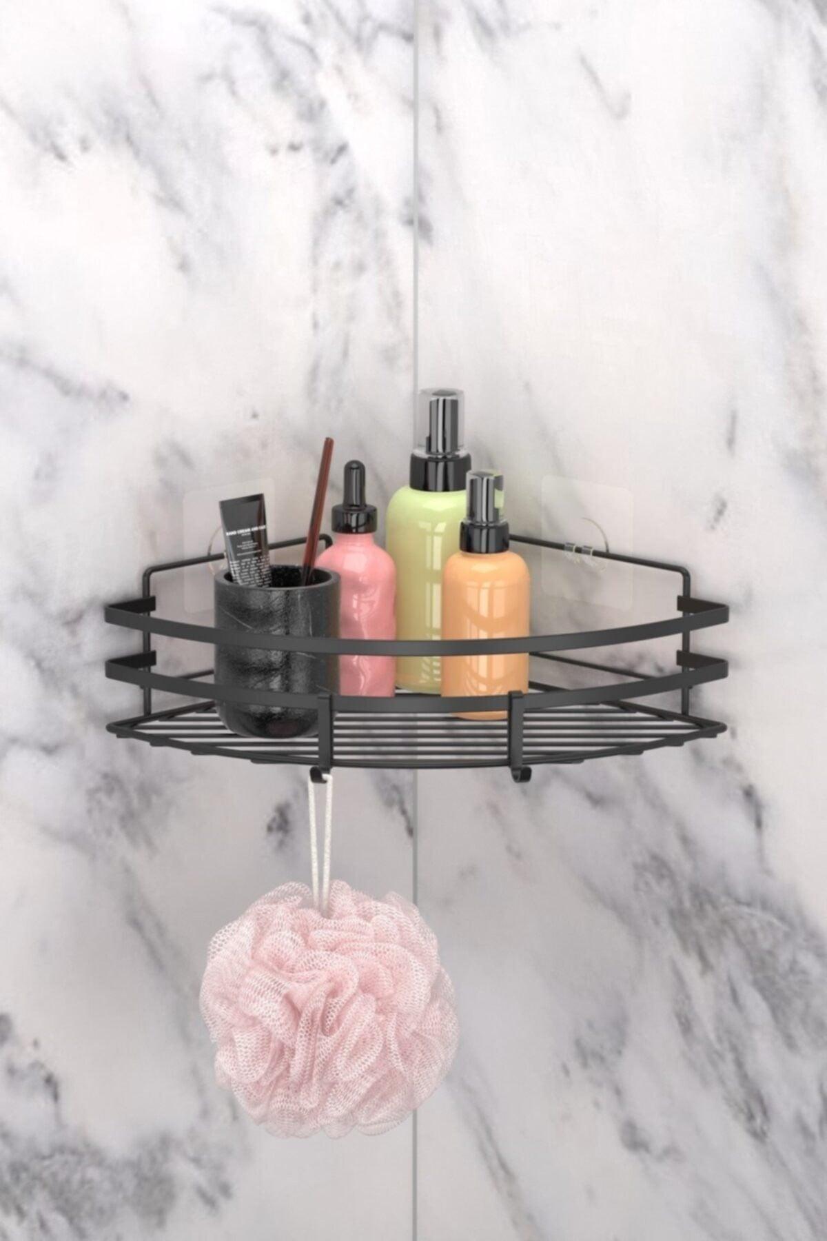 Étagère d'angle de salle de bain adhésive Matt Black ST107H