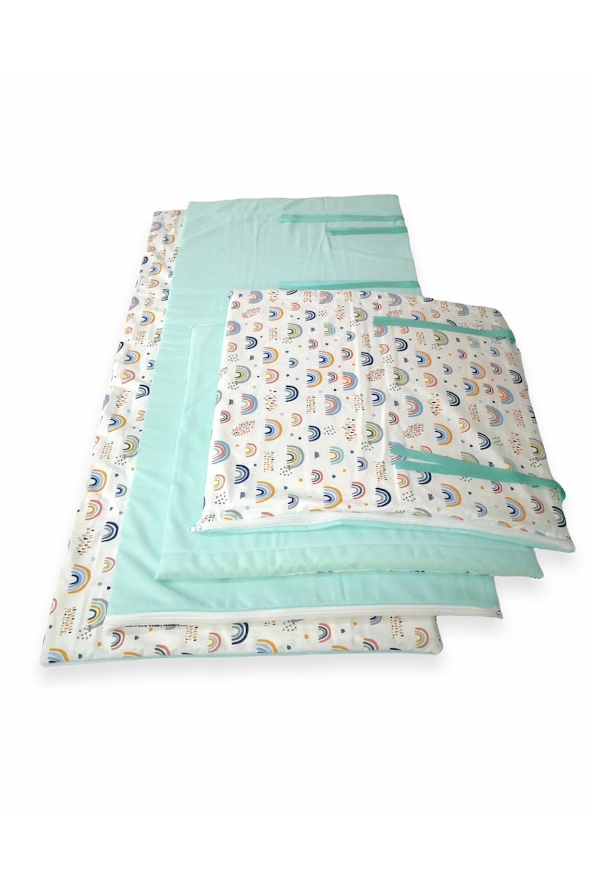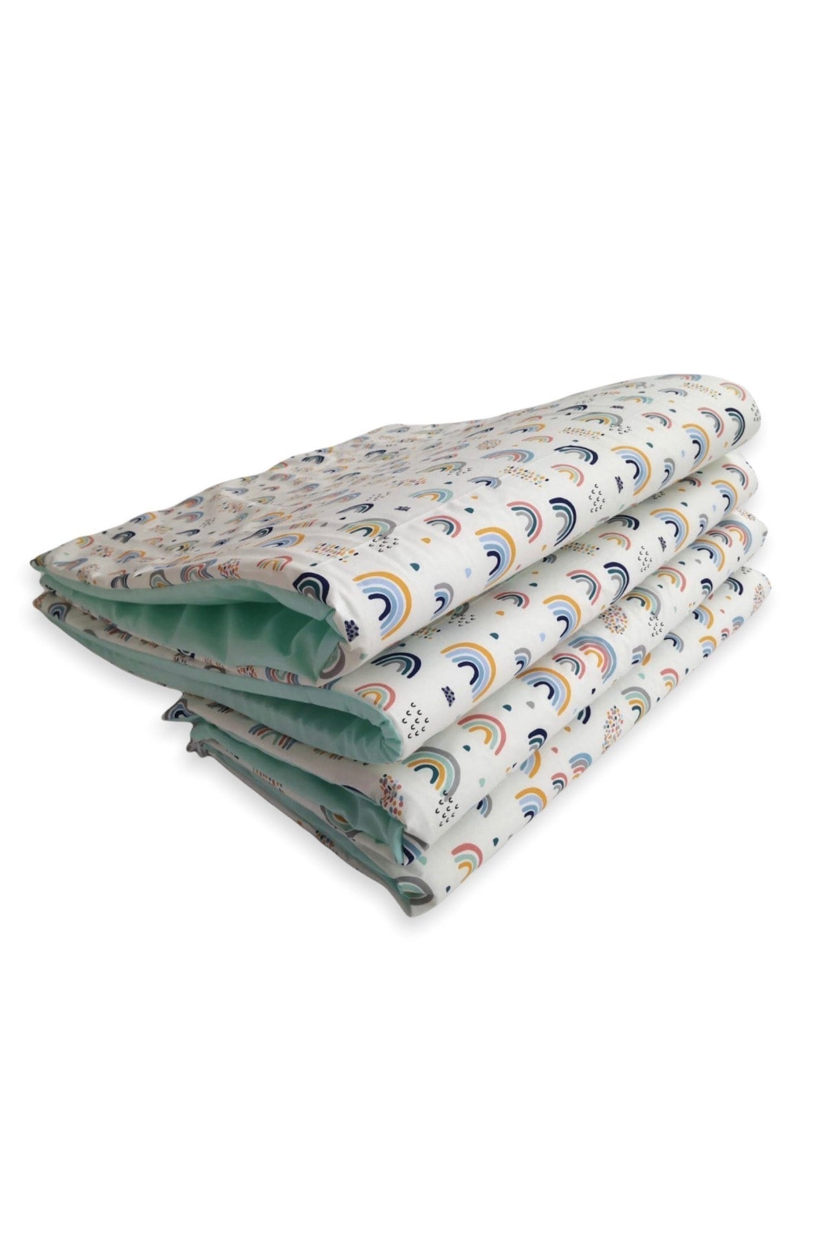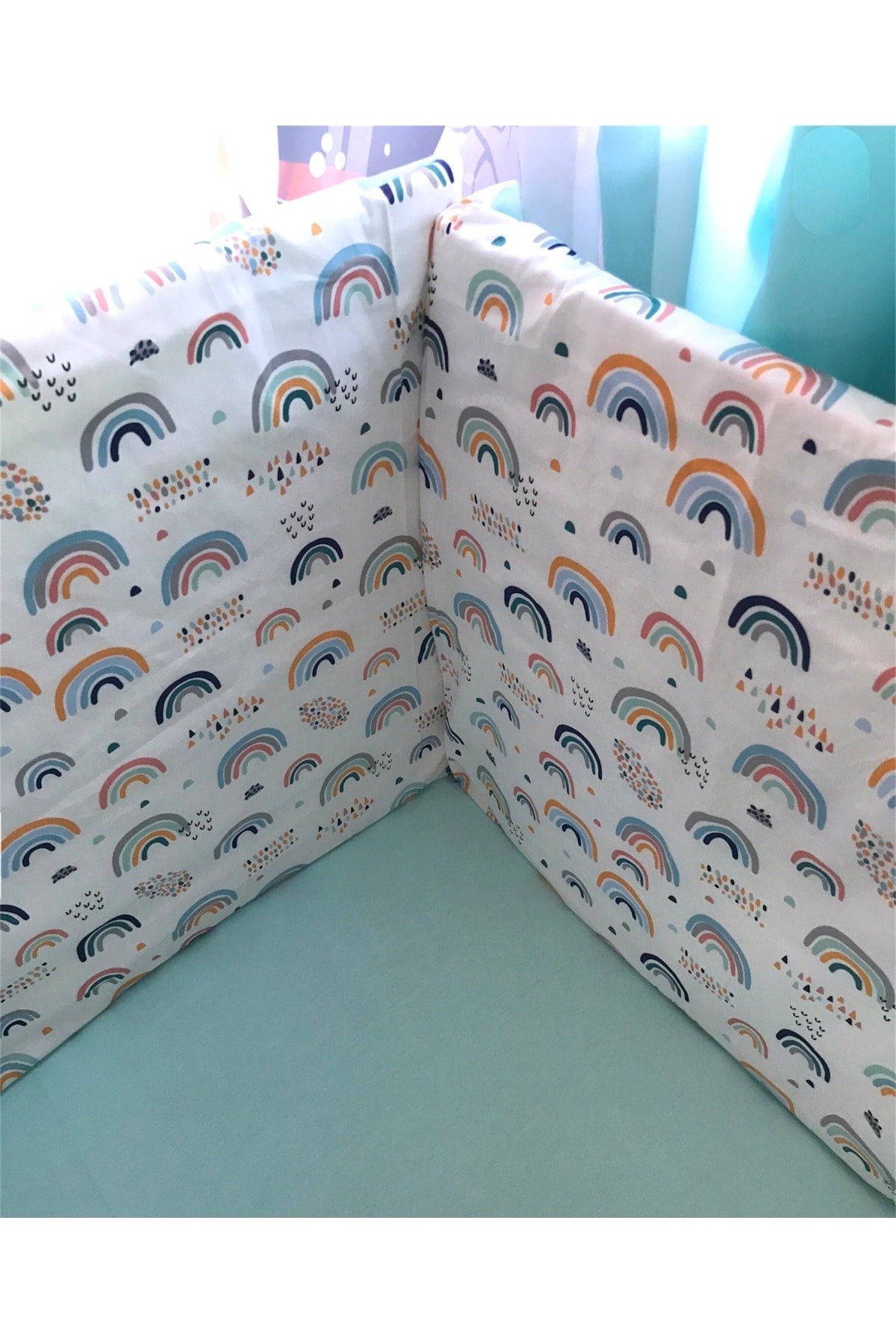 Baby Child Crib Side Protection 90X190 Cm For Montessori 4 Pieces Rainbow Mint Green