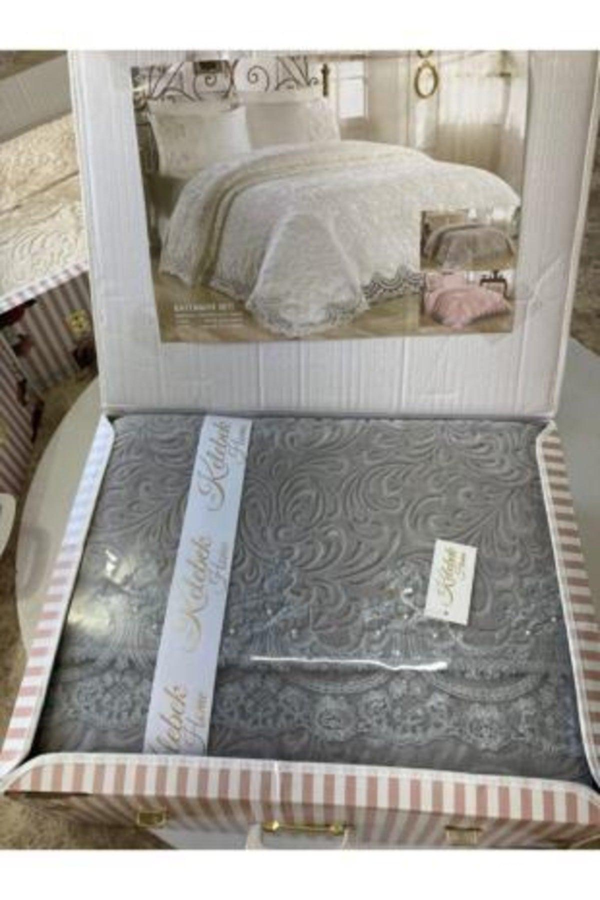 Ensemble de couverture, Double en dentelle française de marque de papillon. La valise a un sac en boîte.