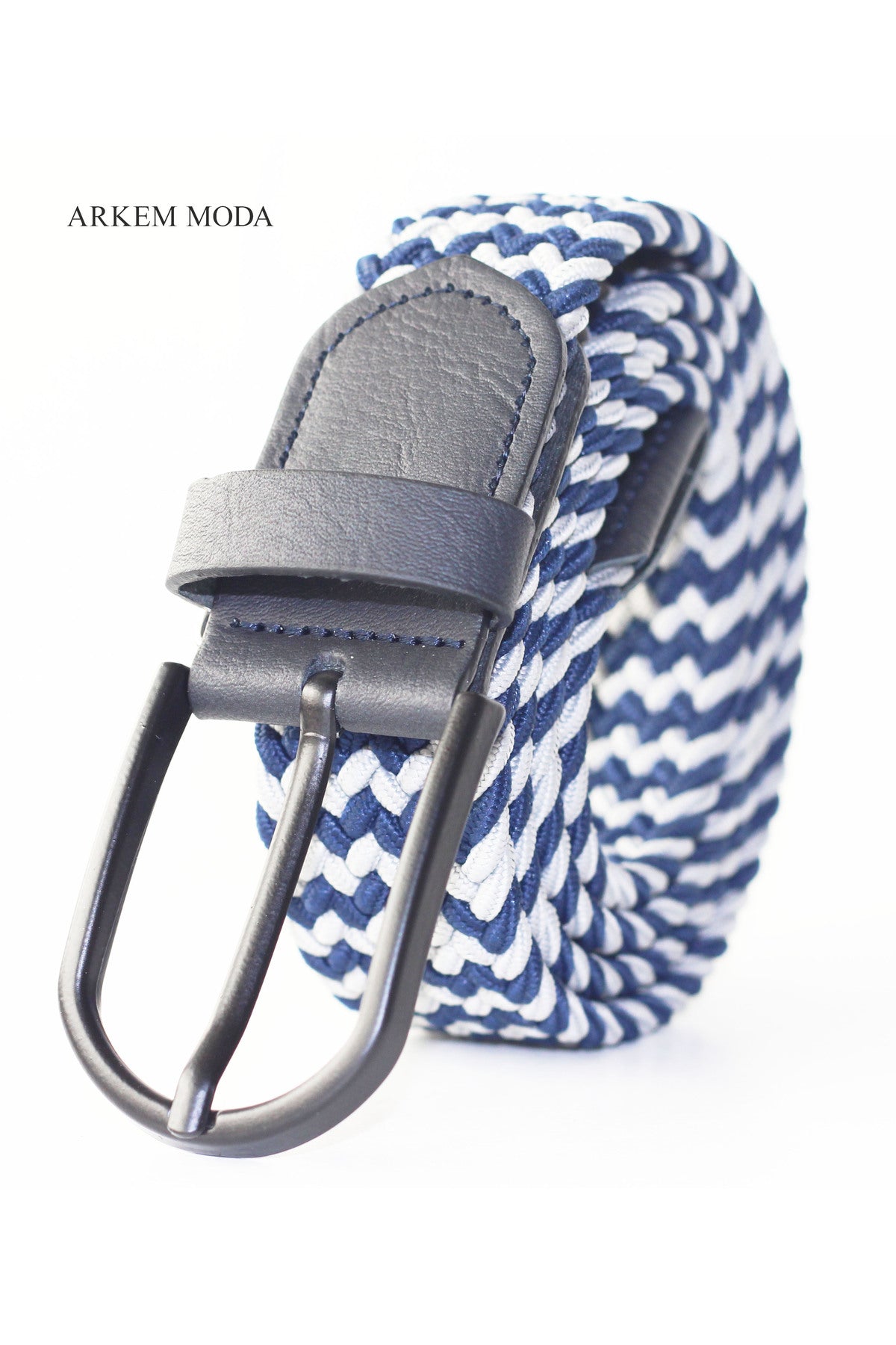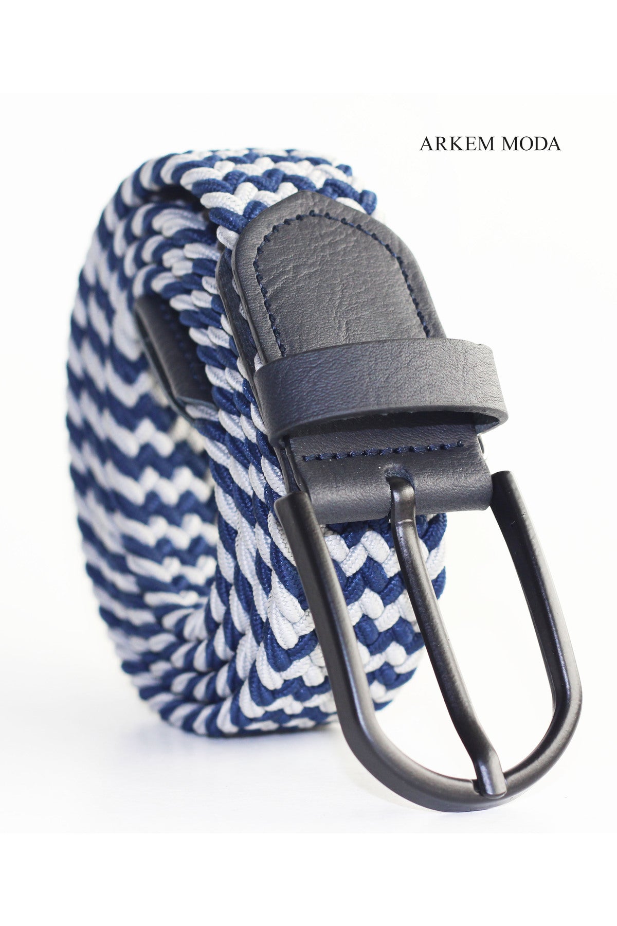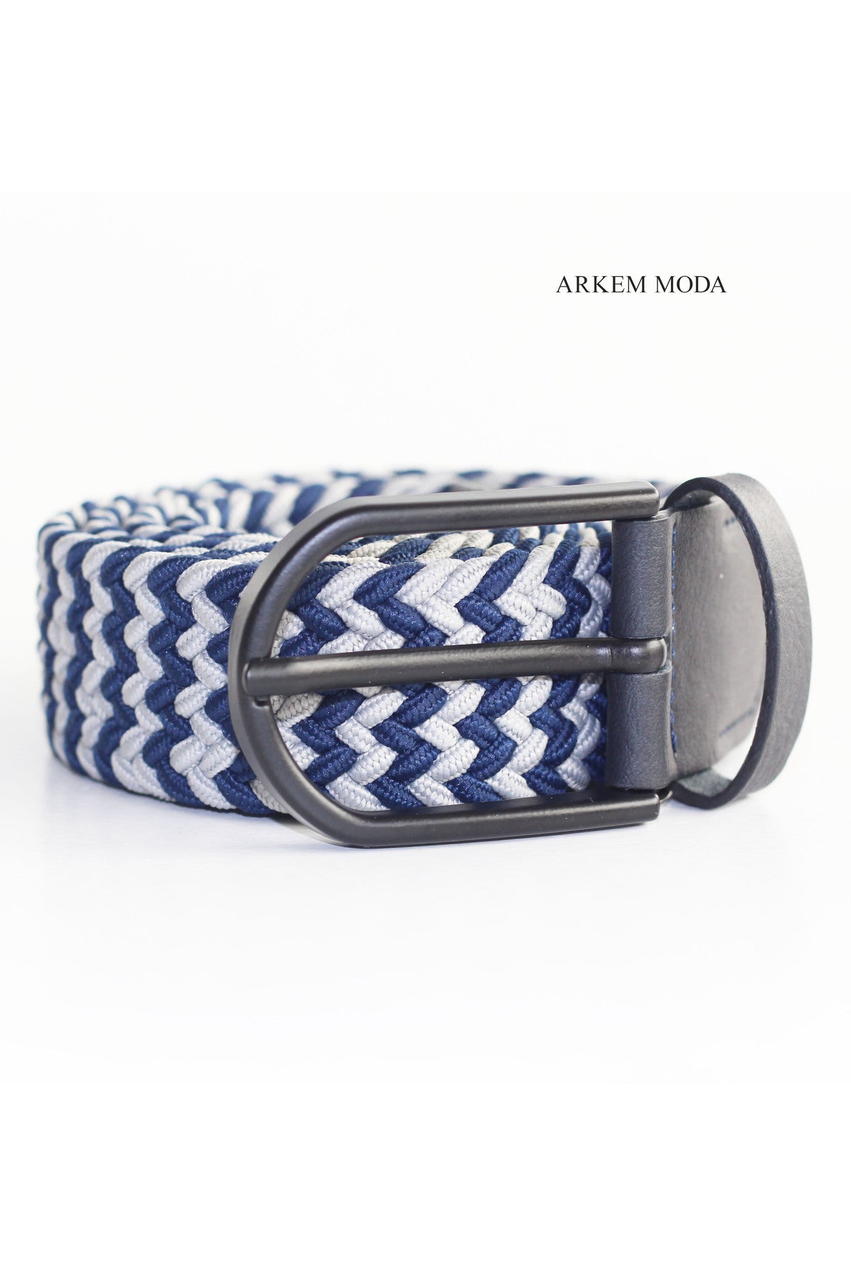 Braided Elastic Belt Navy Blue-Grey Denim, Jean, Sort Men'S Belt 3,5 Cm