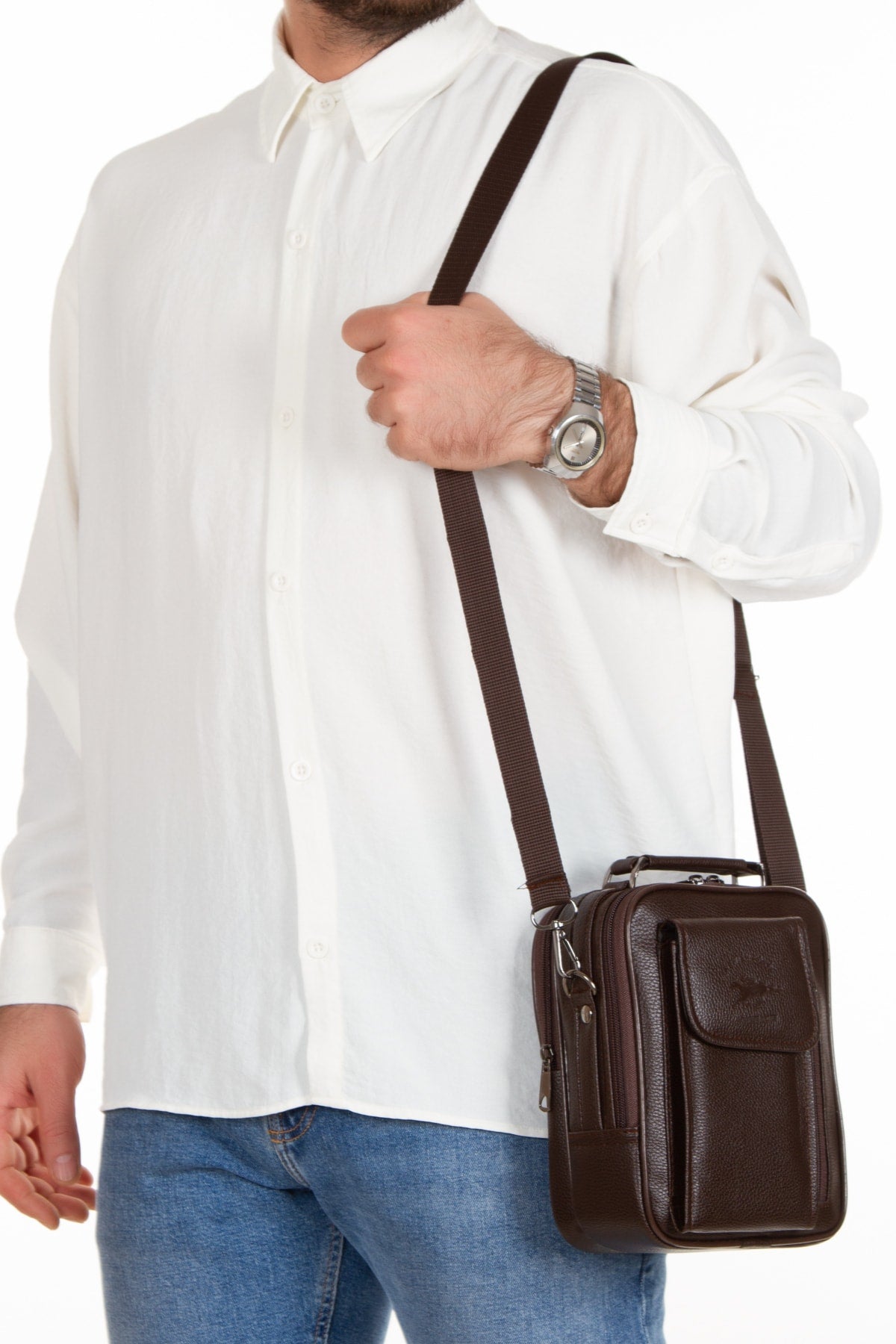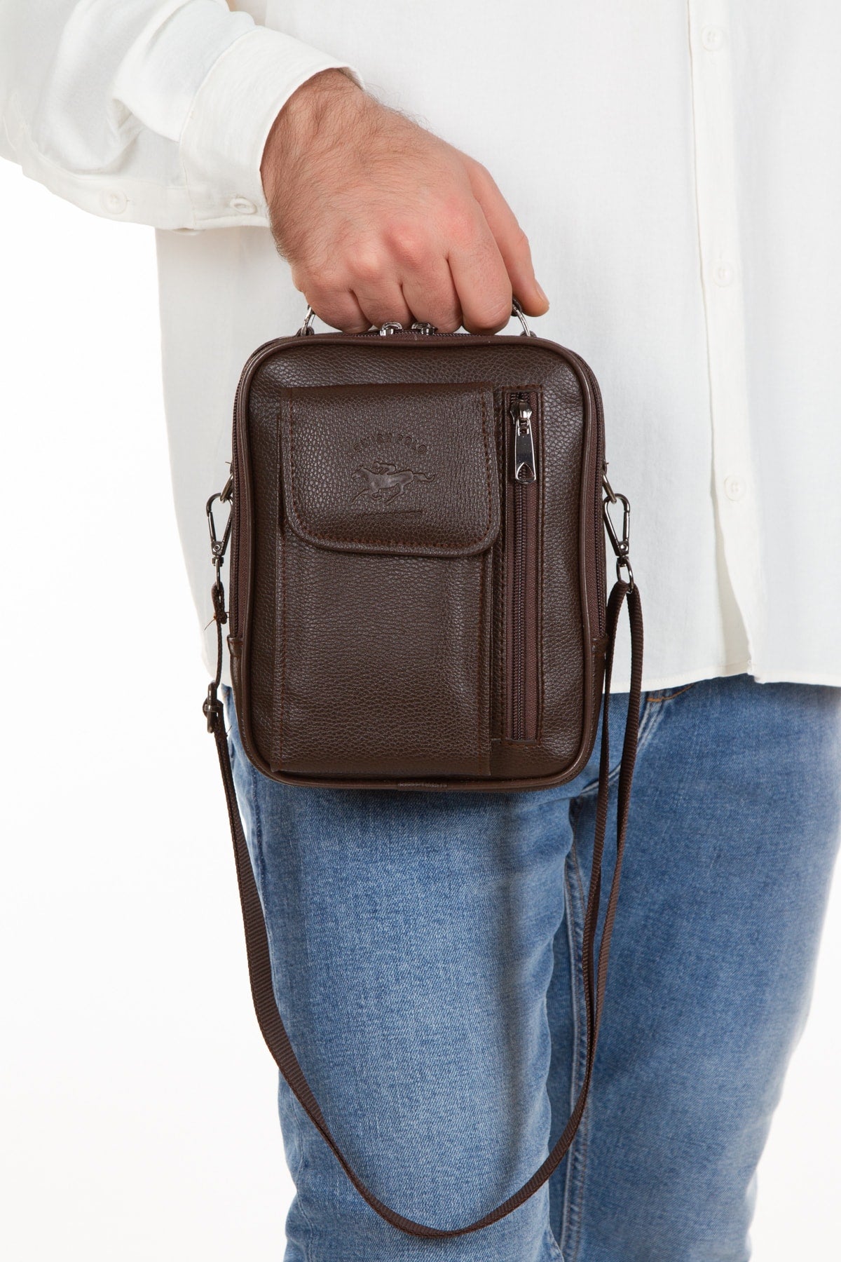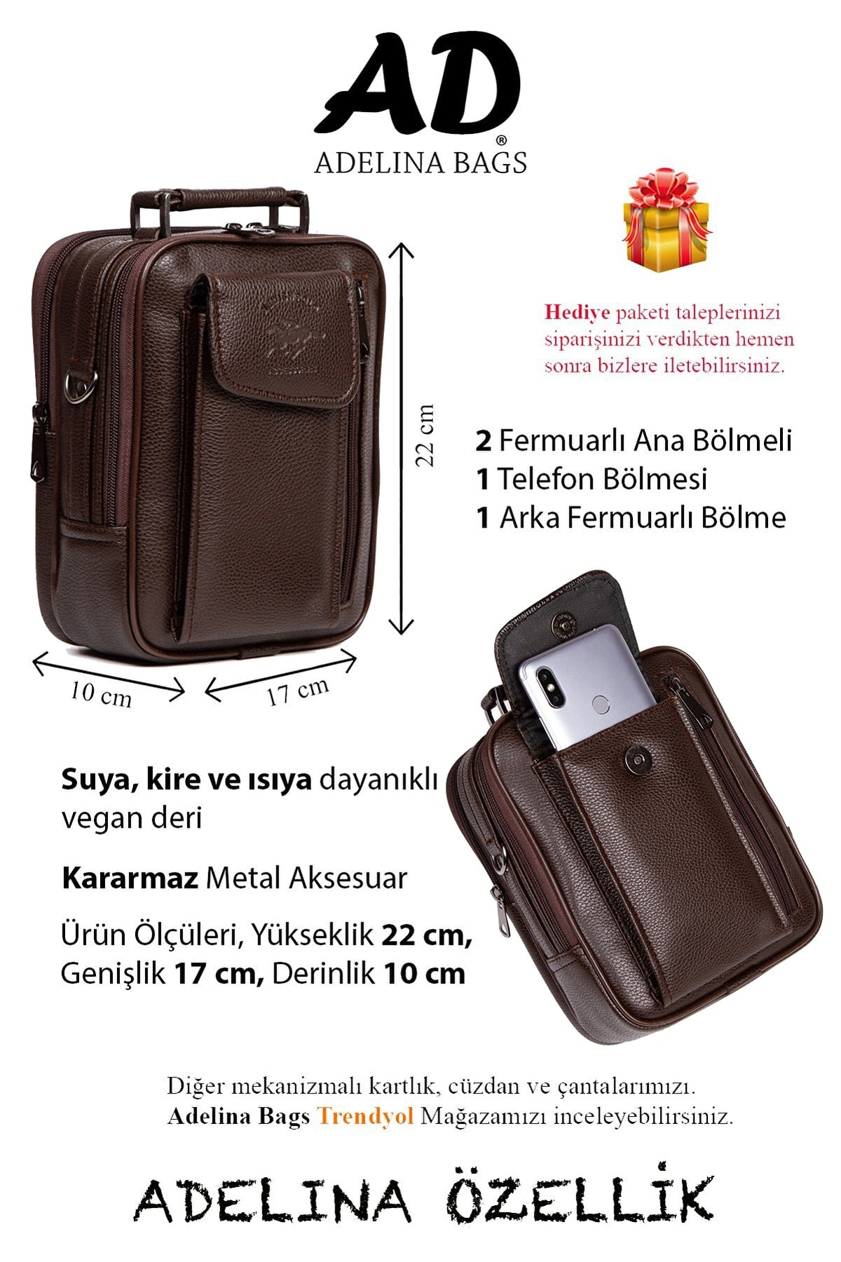 Men's dark brown leather steel case hand and shoulder bag with phone compartment and card holder wallet with mechanism. product dimensions are height 22 cm, width 17 cm, depth 10 cm. our bag has 1 phone compartment, 2 main zippered compartments, 1 rear zippered compartment. it is resistant to water, dirt and heat. it is produced in accordance with tse standards. made from premium vegan leather. it is convenient and practical for daily use. it has a magnetic phone compartment. it has a safe on-off. the shoulder strap is ergonomic with adjustable length. long years of wear, sagging, creep, etc. it is a product that you can use without such problems. wallet dimensions: 7x10 cm. it takes 5 cards in the aluminum mechanism slide. in our product, there is 1 driver's license and id card compartment with tooth window, 1 inner paper money compartment. it is made of vegan leather with first-class workmanship. Improved version for clearer understanding and better search visibility. Suitable for users seeking detailed and reliable product information.