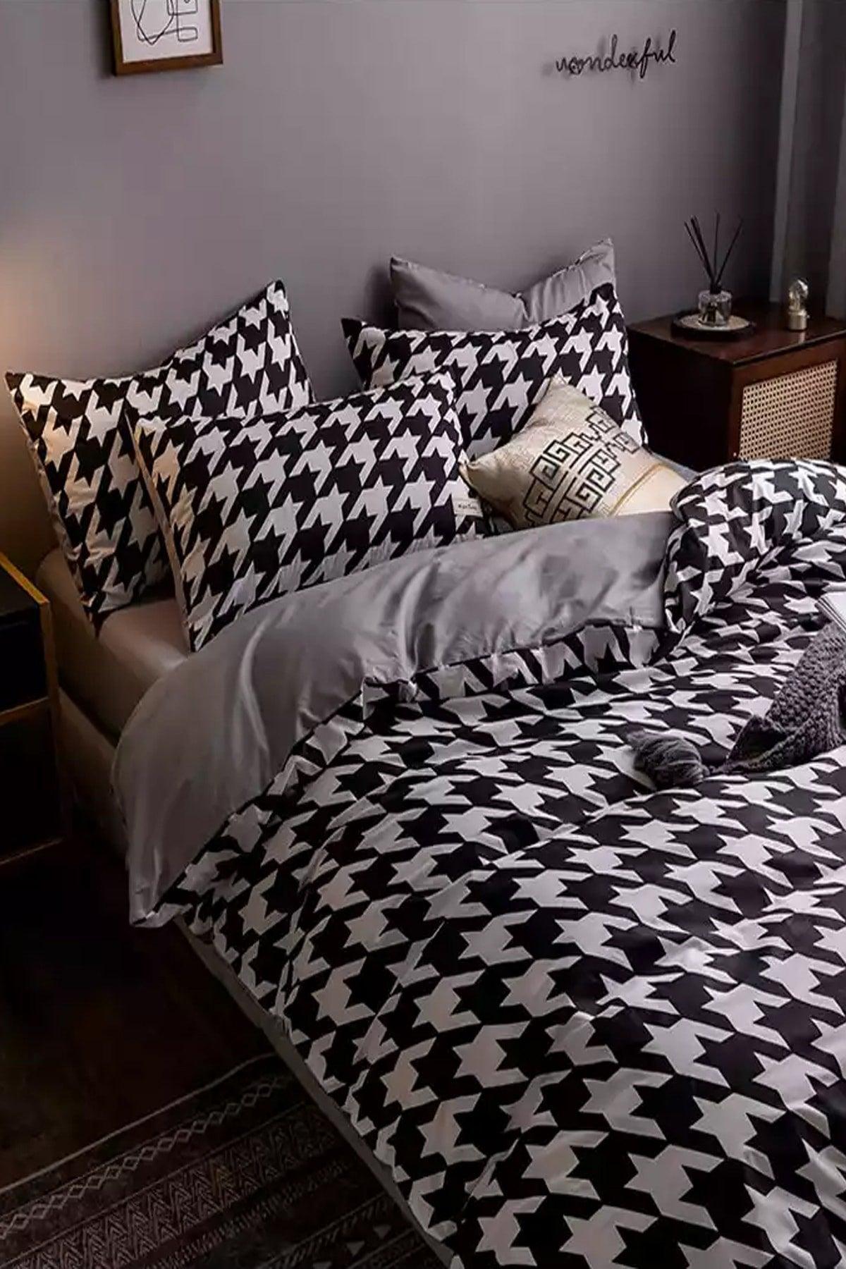 Couette de couette en lin à lit élastique Ensemble de croche-pied simple gris