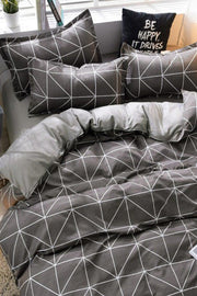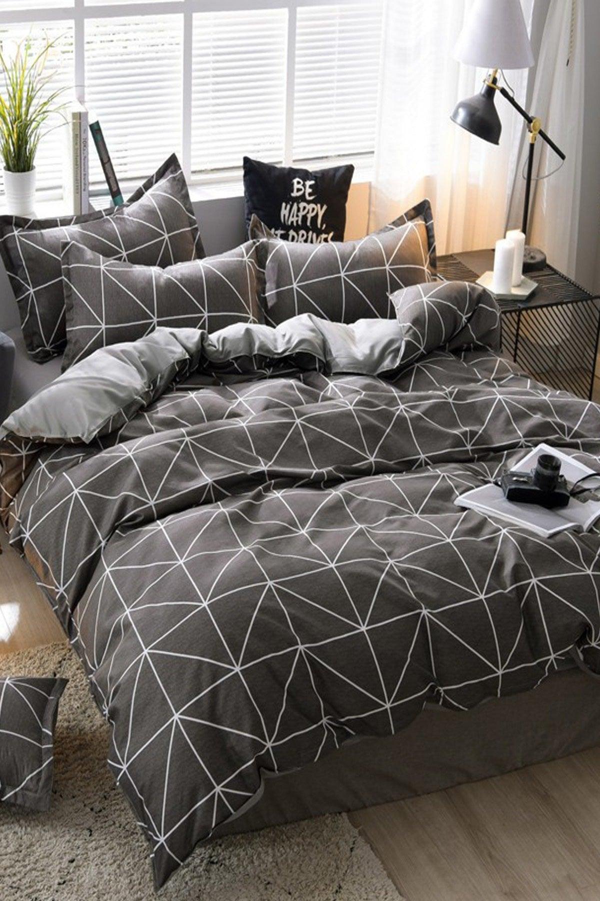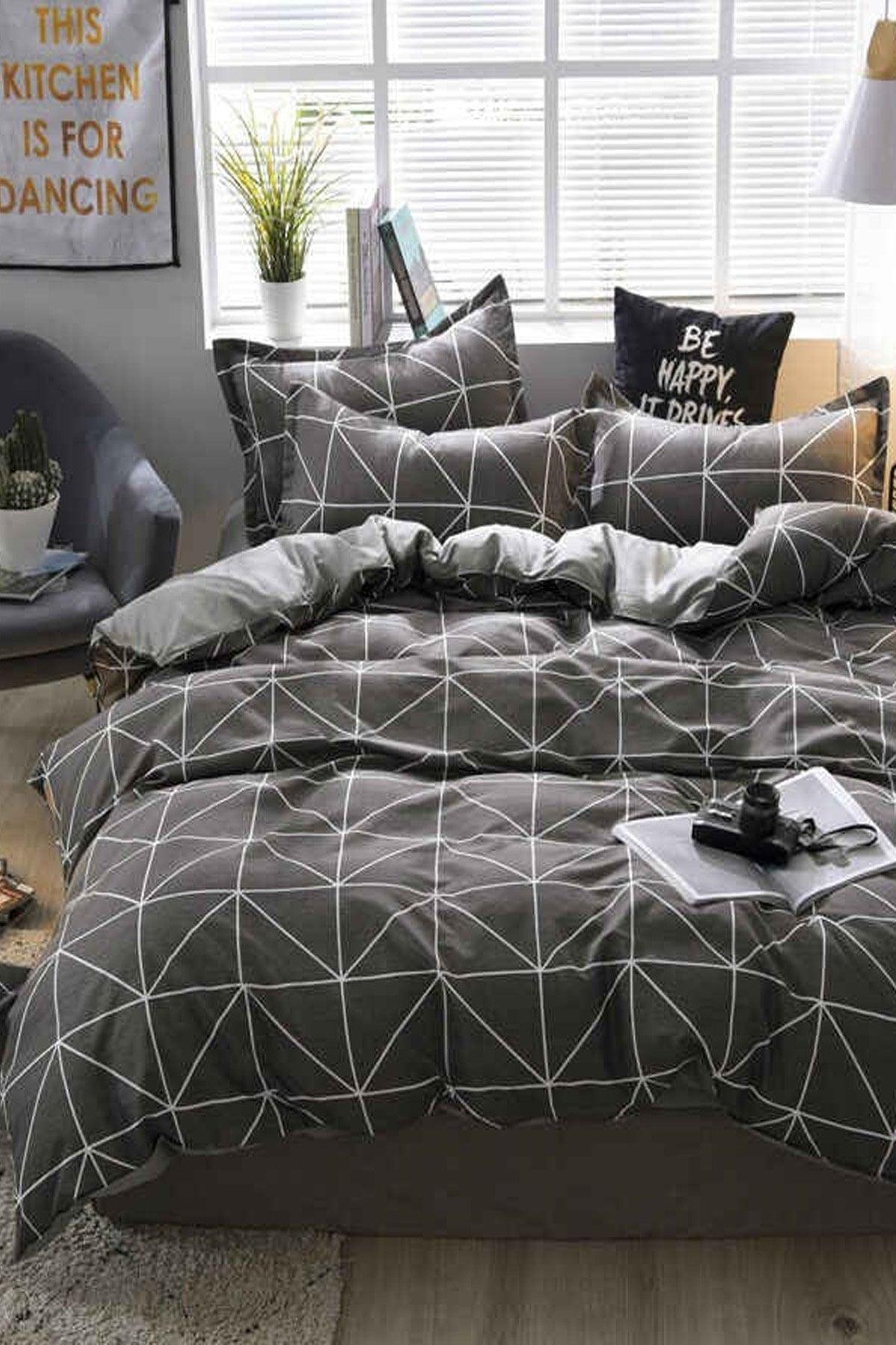Couvercle de couette en lin à lit élastique ensemble unique pyramide gris