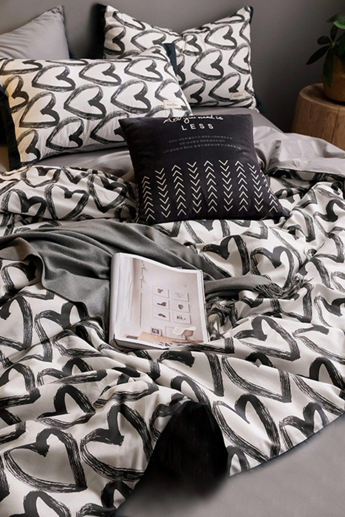 Couvrette de couette en lin élastique ensemble Double Love Heart Grey