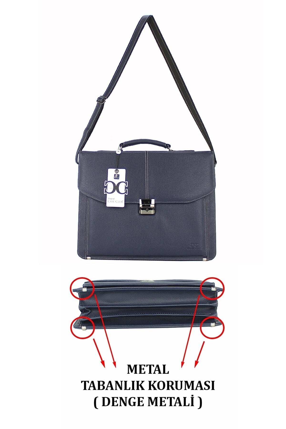 File Document Handbag With Lock Mechanism 15.6 Inch Laptop Compartment With Shoulder Strap A4 Compatible Navy Blue Color