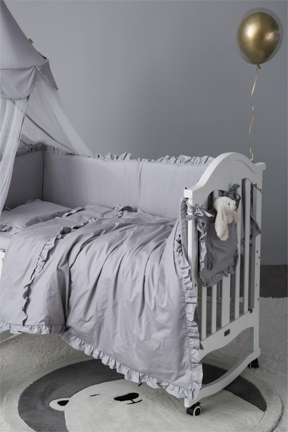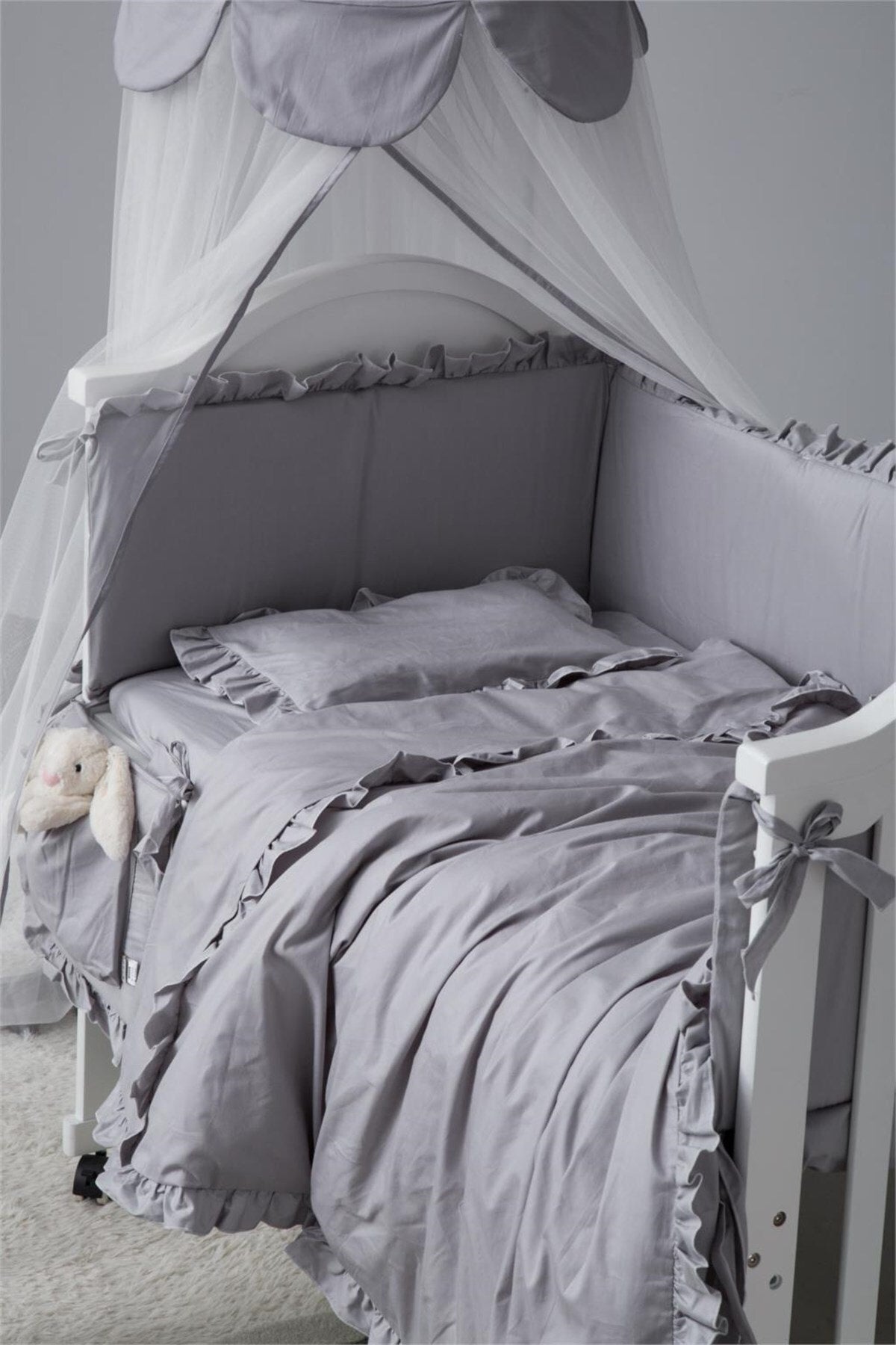 Frilly Gray 60X120 Color Crib / Montessori Side Protection And Duvet Cover Set Bedding Set