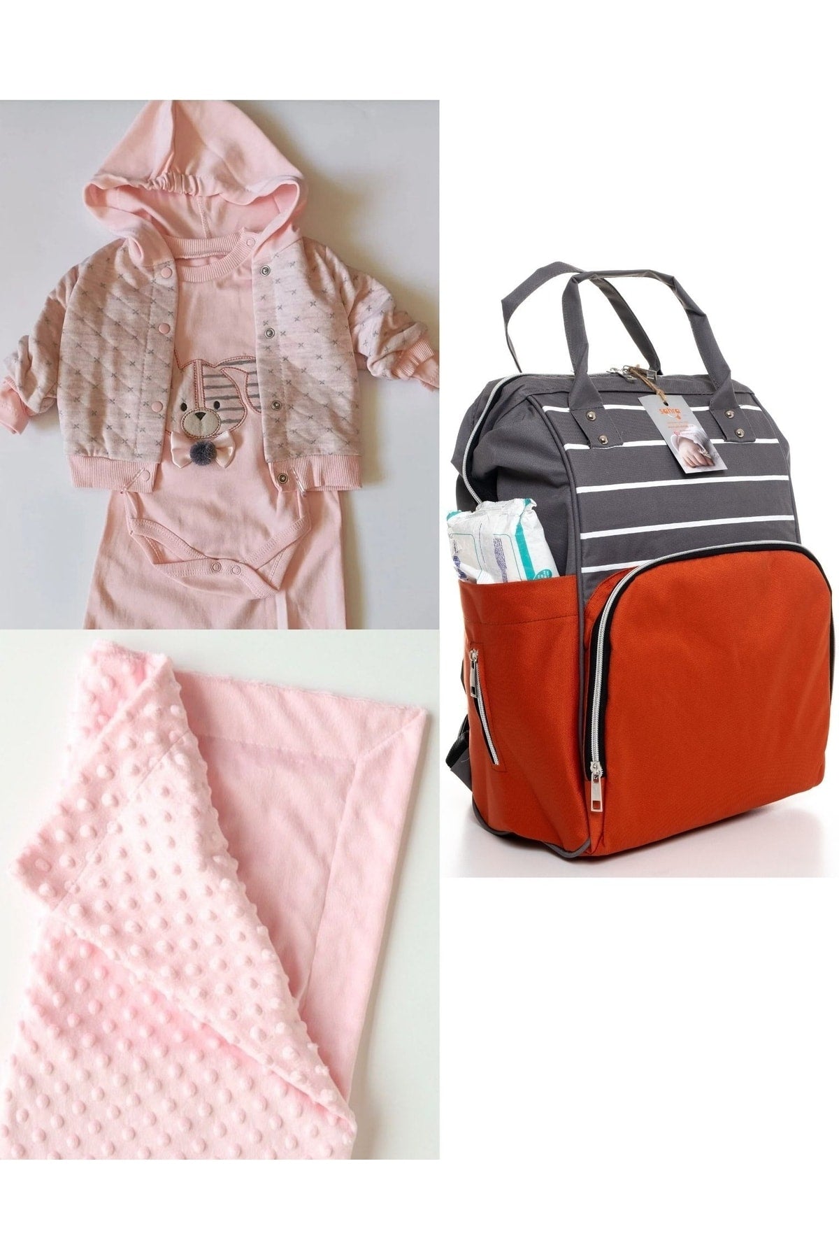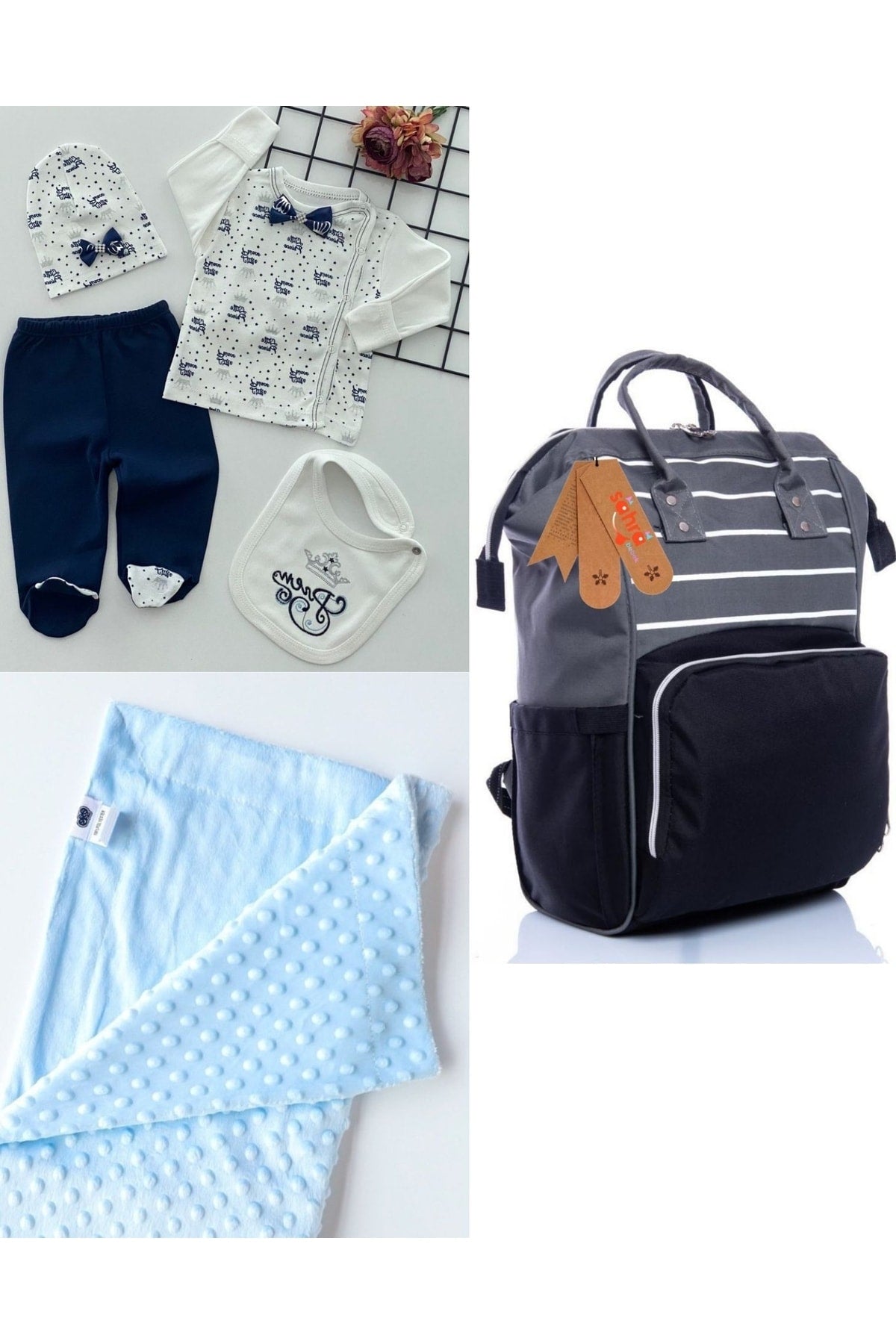 Functional Mother Baby Care Backpack, 100% Cotton Hospital Outlet And Chickpea Blanket Set