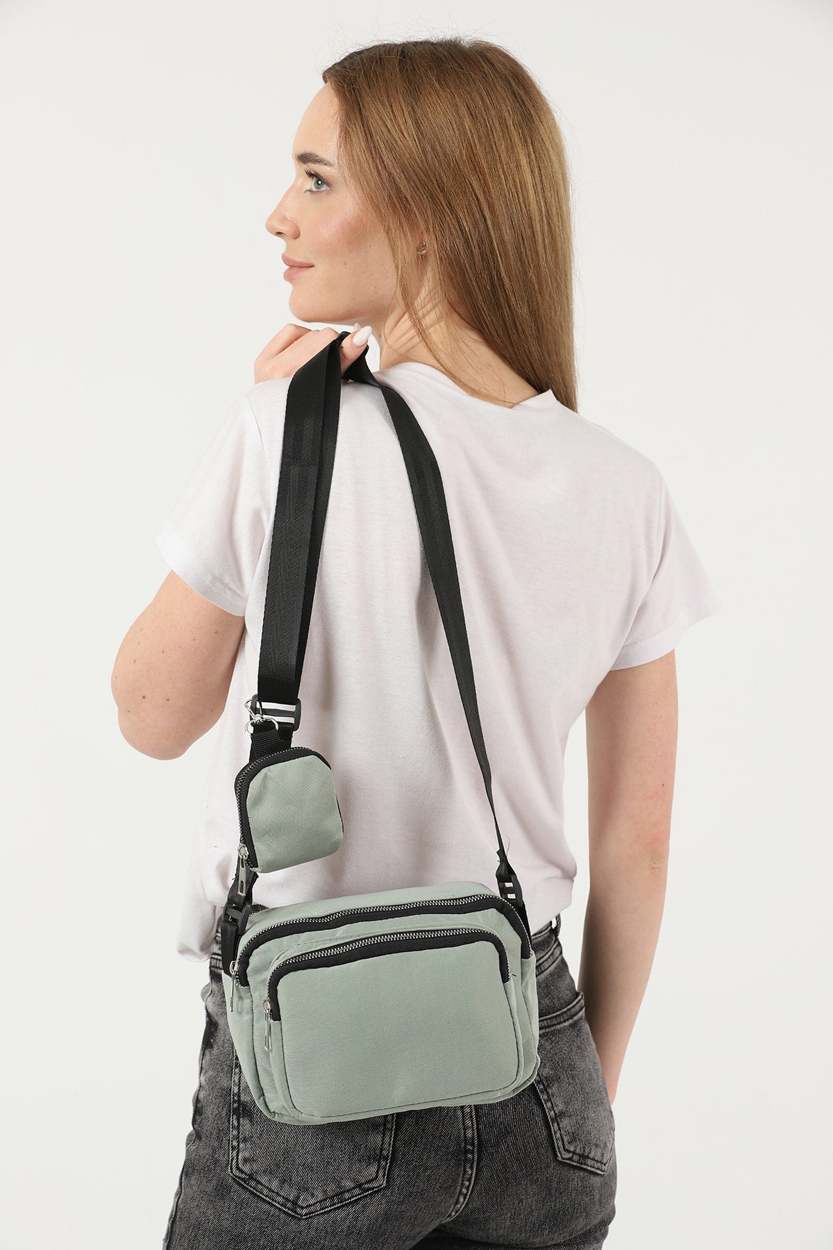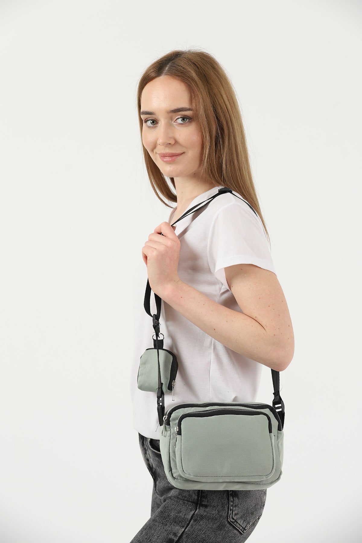Green U4 Canvas Women'S Cross Shoulder Bag With 2 Compartments And Wallet With Adjustable Strap B:17 E:22 G:12