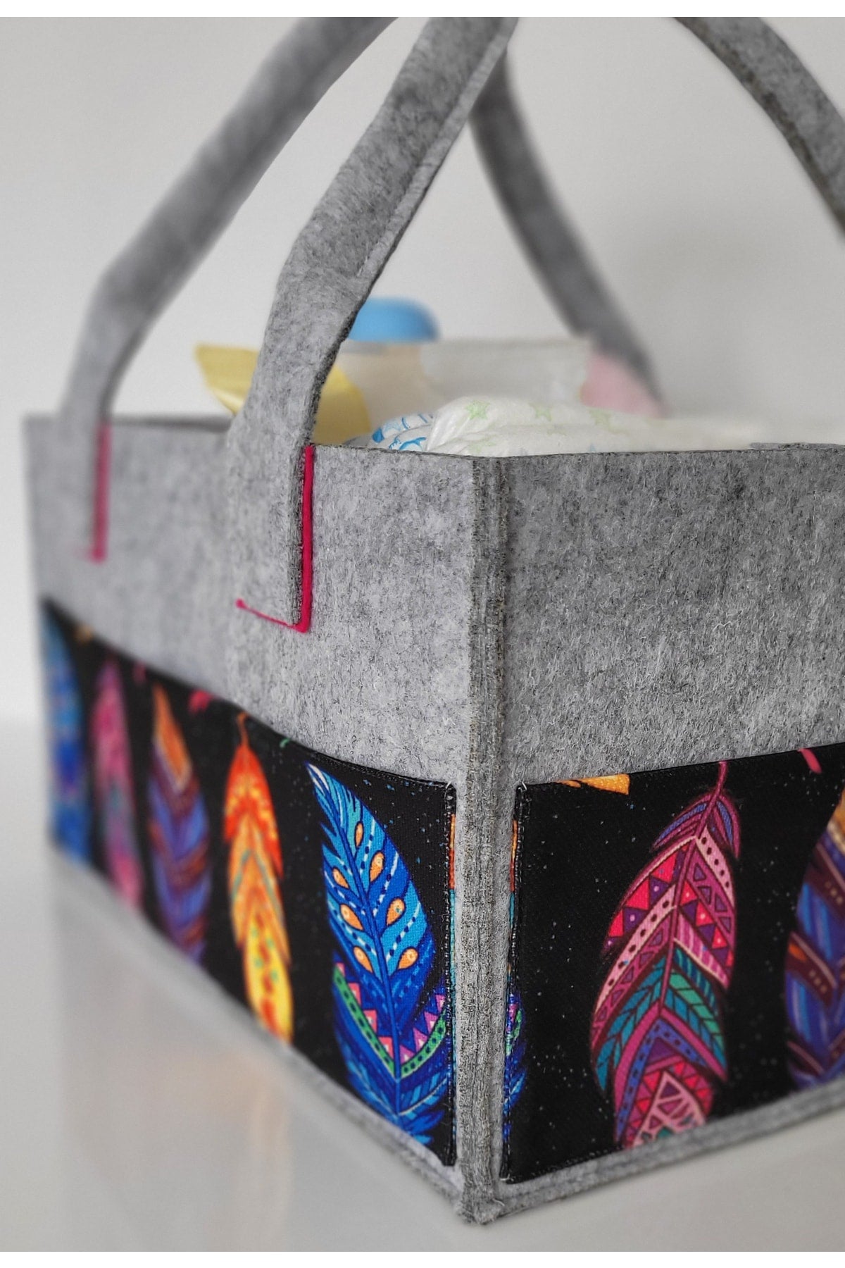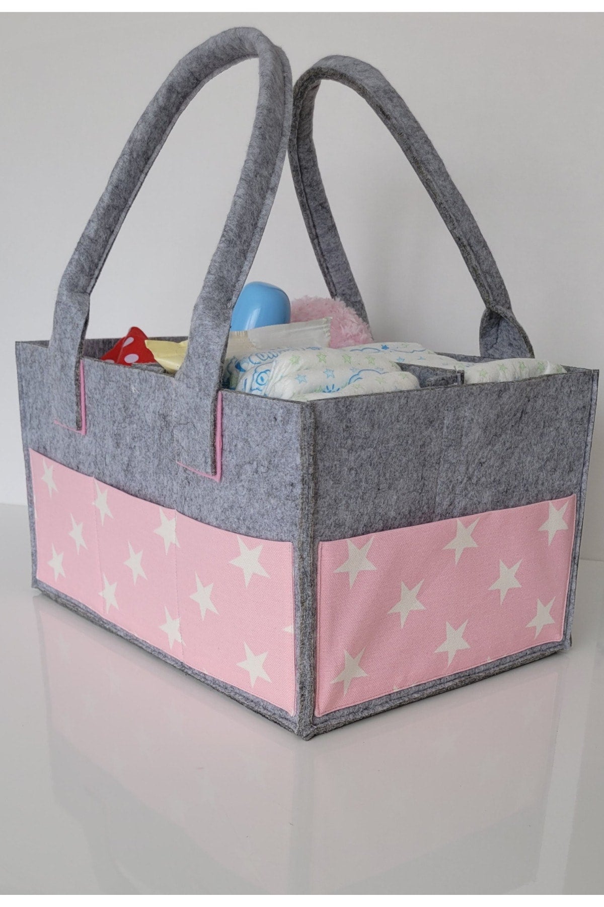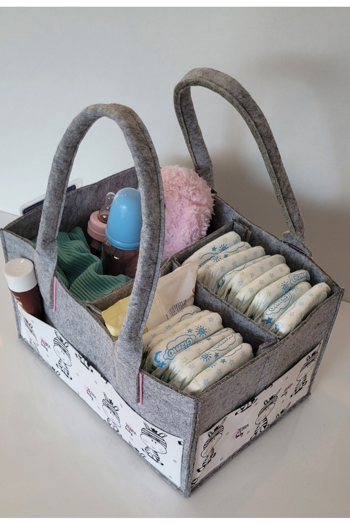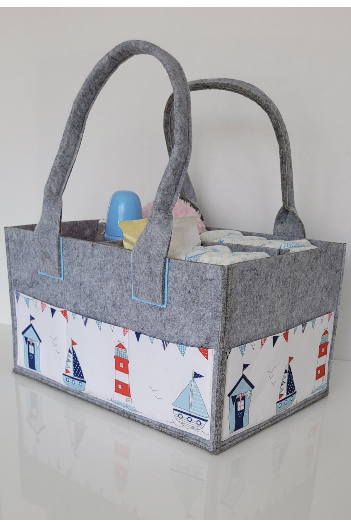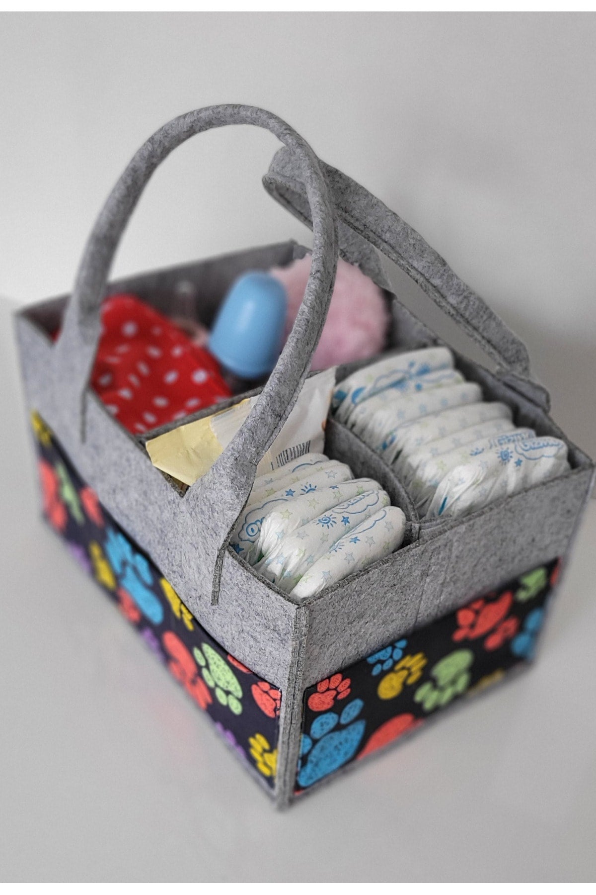 Our products are made of felt and cotton fabric. there are interior compartments that can be used functionally. it is durable thanks to its robust stitching feature that has been tested for durability. it provides functional ease of use, thanks to the removable and plug-in feature of the inner compartments. since it can be used as a single compartment, two or three compartments, it provides convenience in transporting items of different sizes. there are three pockets on the front and two on the sides, so you can keep your baby's care products such as feeding bottles, creams and pacifiers with you. bag dimensions width: 23cm length: 33cm height: 18cm attention washing instructions: please wash by hand and with warm water in order to use our products for a longer life. use soap that does not contain bleach and chemicals. iron at medium temperature without steam. Improved version for clearer understanding and better search visibility. Suitable for users seeking detailed and reliable product information.