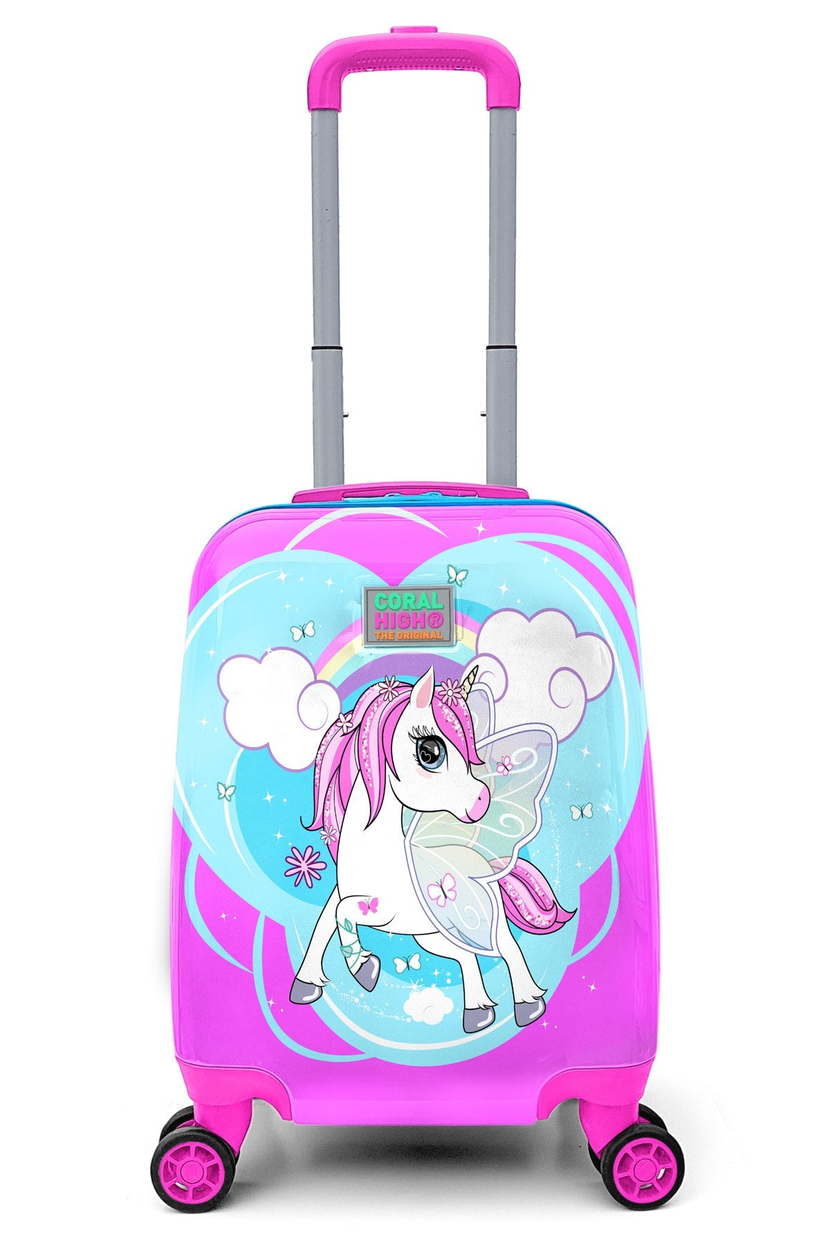 Kids Blue Neon Pink Unicorn Patterned Luggage 16712