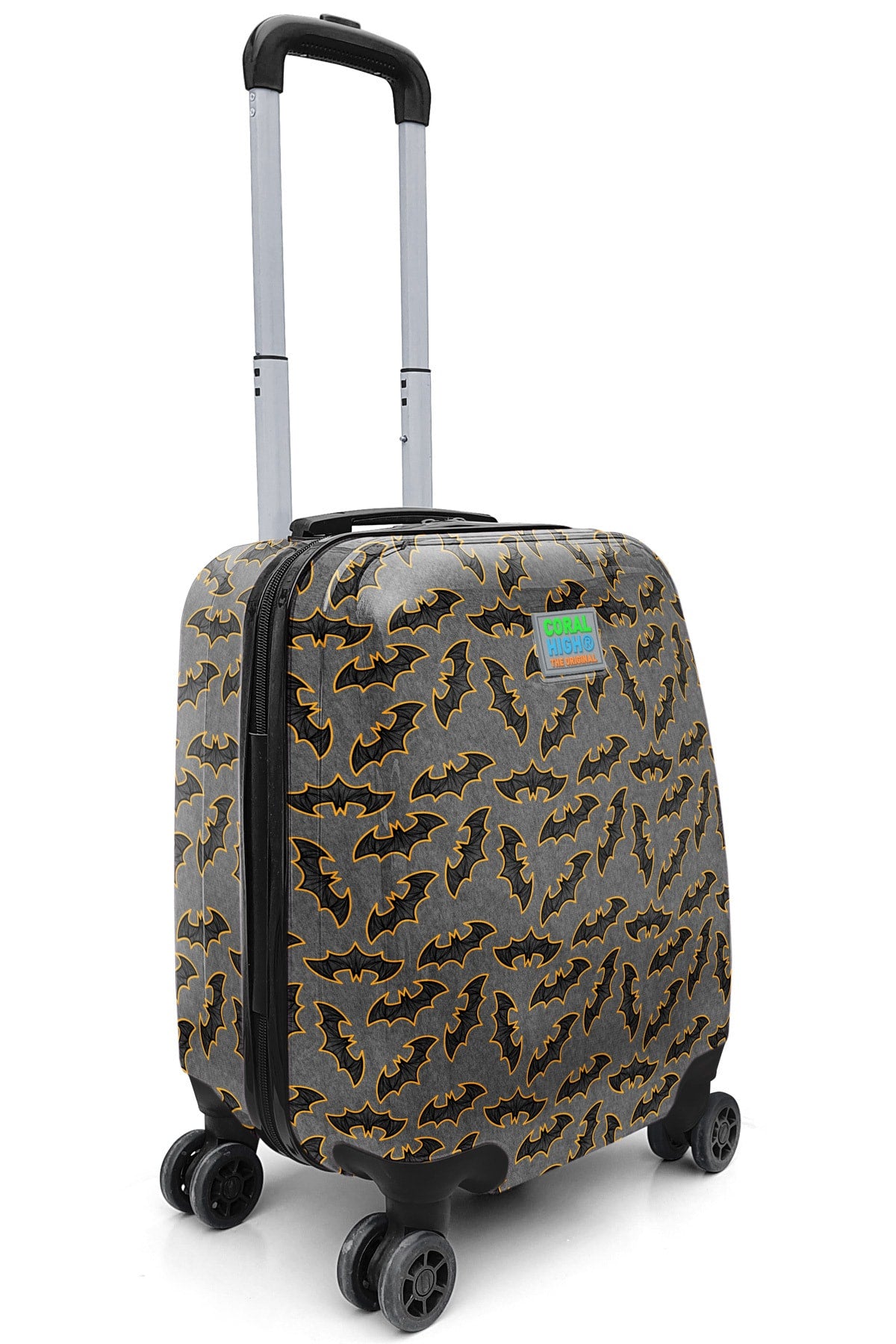 Kids Dark Gray Mustard Bat Patterned Child Suitcase 16740