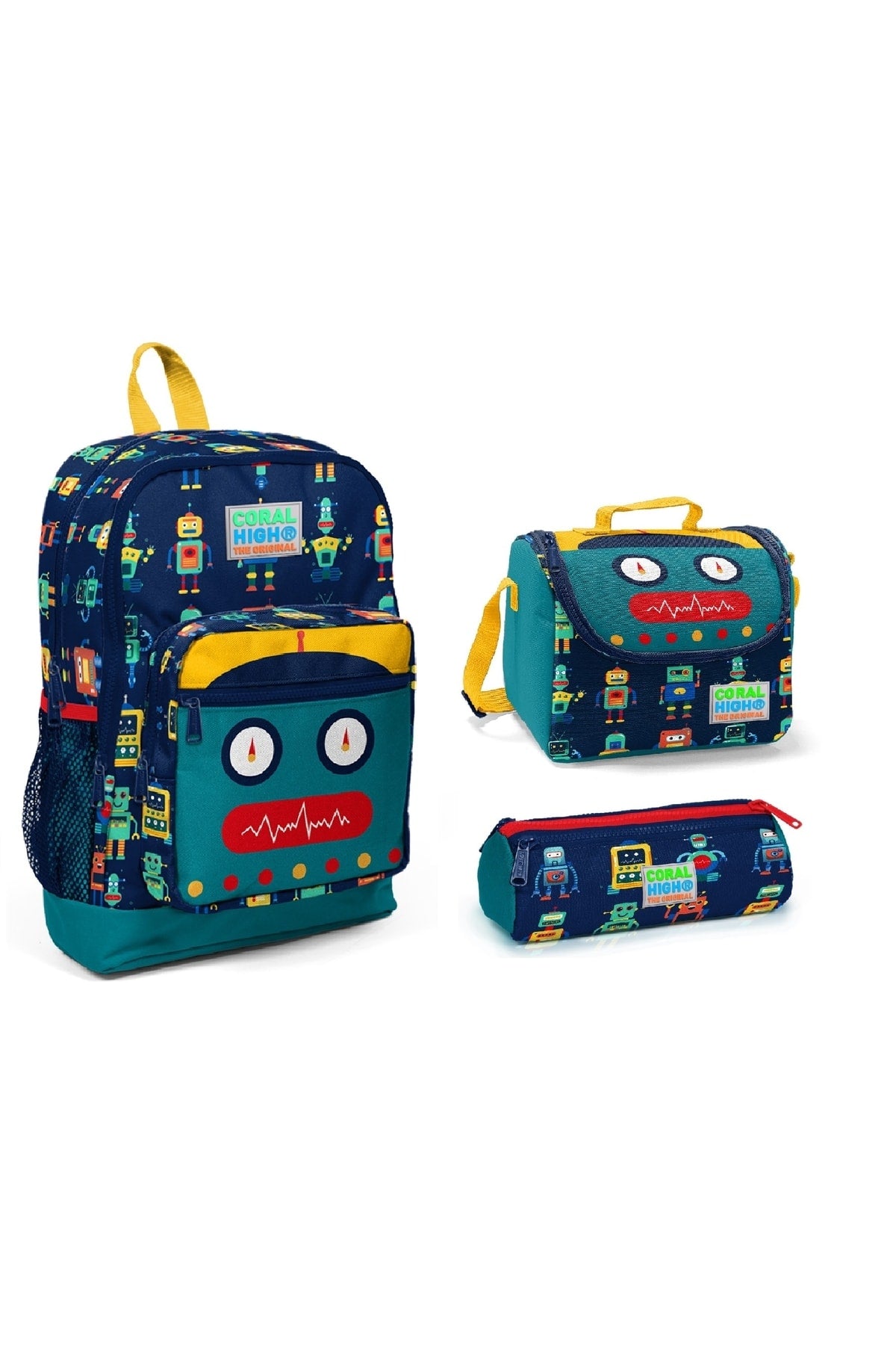 Kids Four-Compartment Robot Patterned 3-Piece School Bag Set