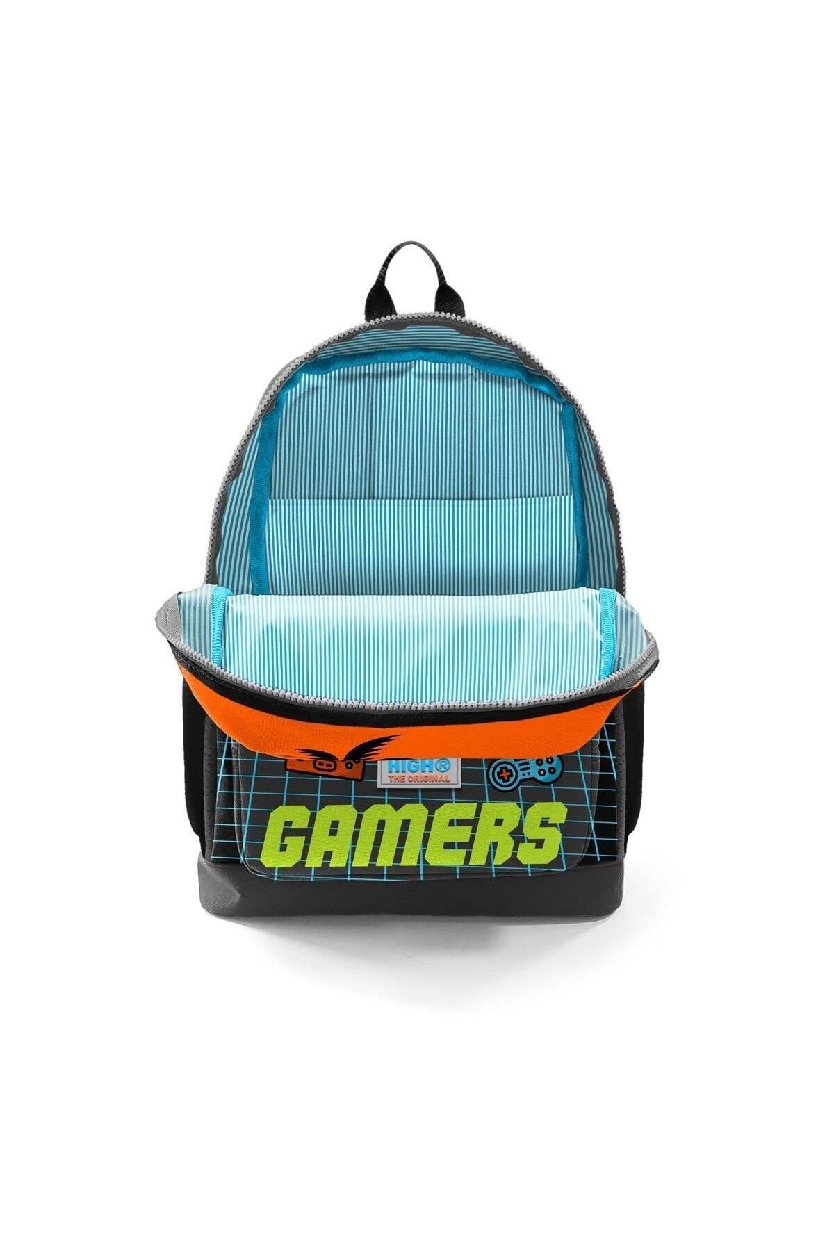 Kids Gray Orange Gamer Patterned 3-Pack School Bag Set