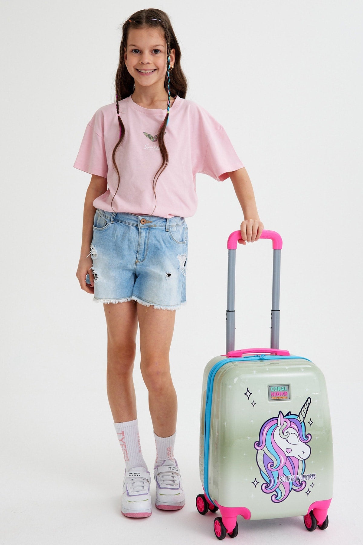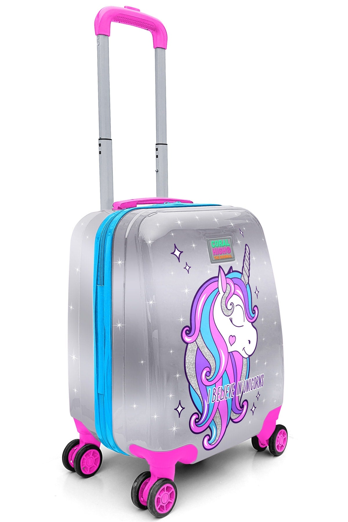 Kids Pink Silver Unicorn Patterned Luggage 16728