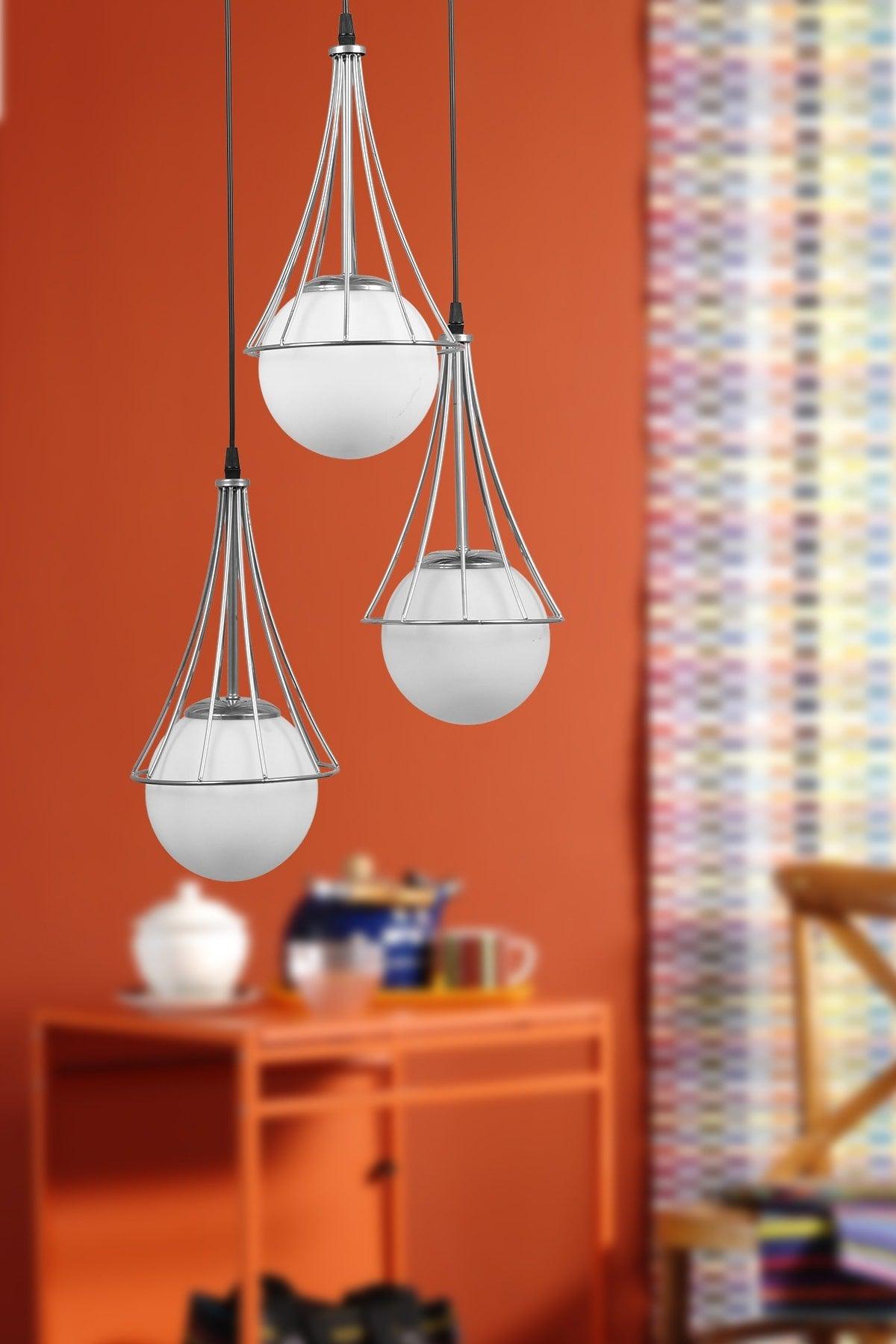 Lapis 3rd Chandelier Chrome-white Globe Glass - Swordslife
