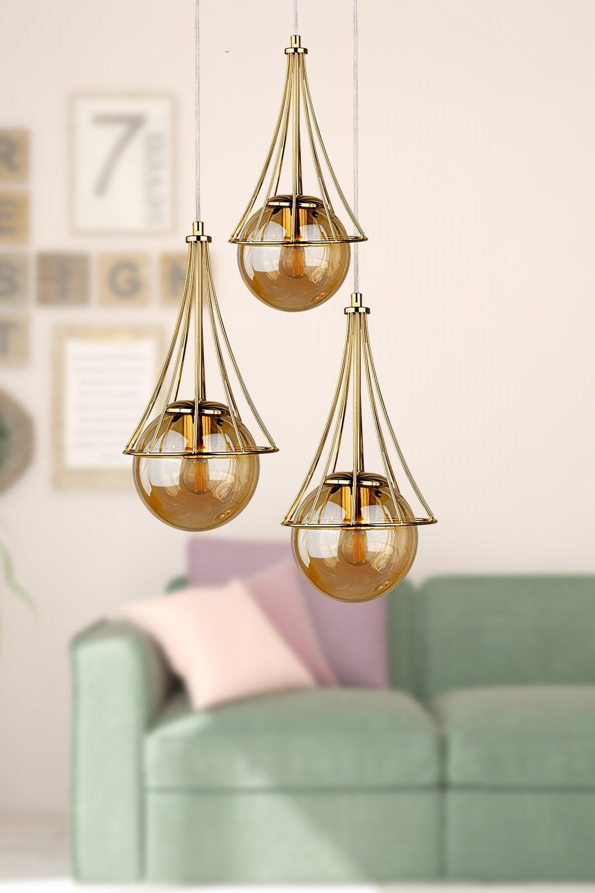 Lapis 3rd Chandelier Gold-honey Globe Glass - Swordslife