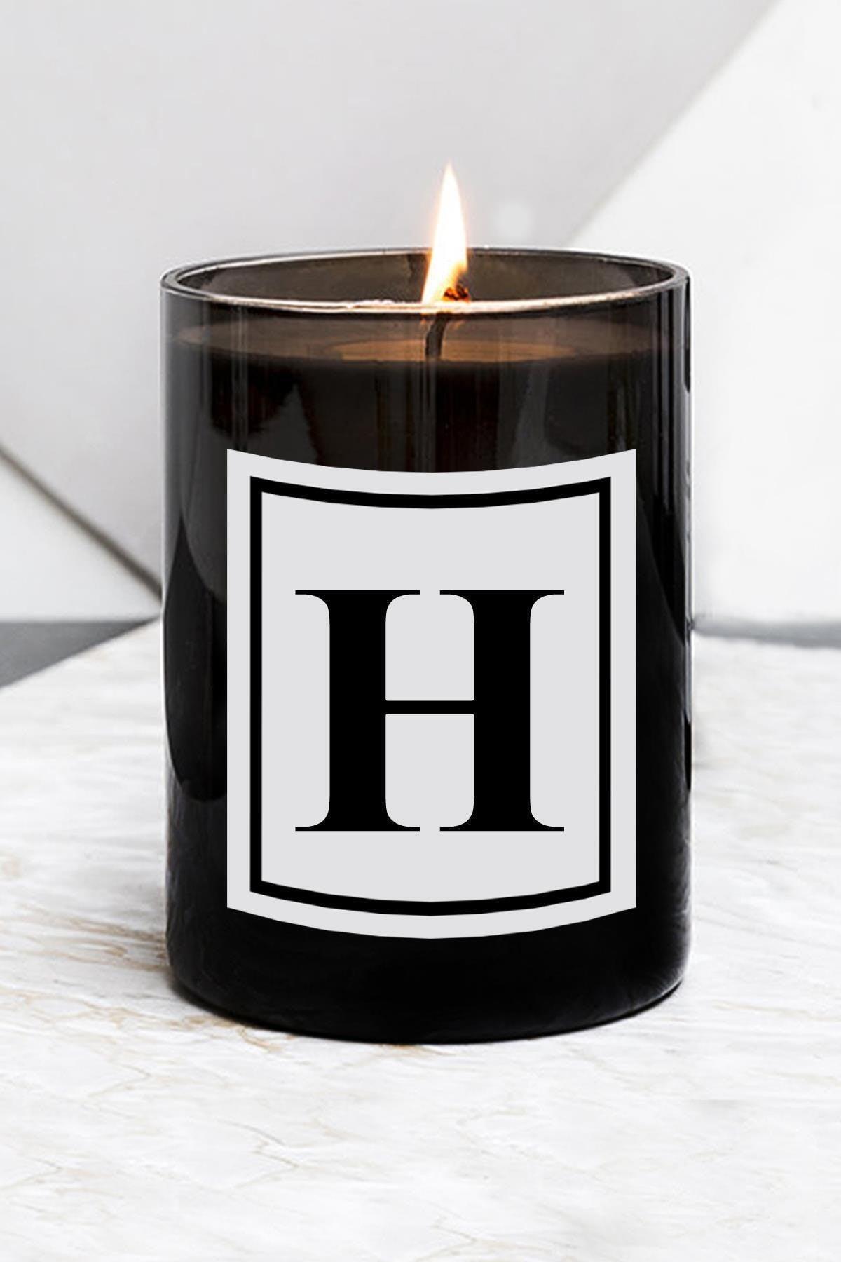 Lettre H Bougie en verre noir de grande taille