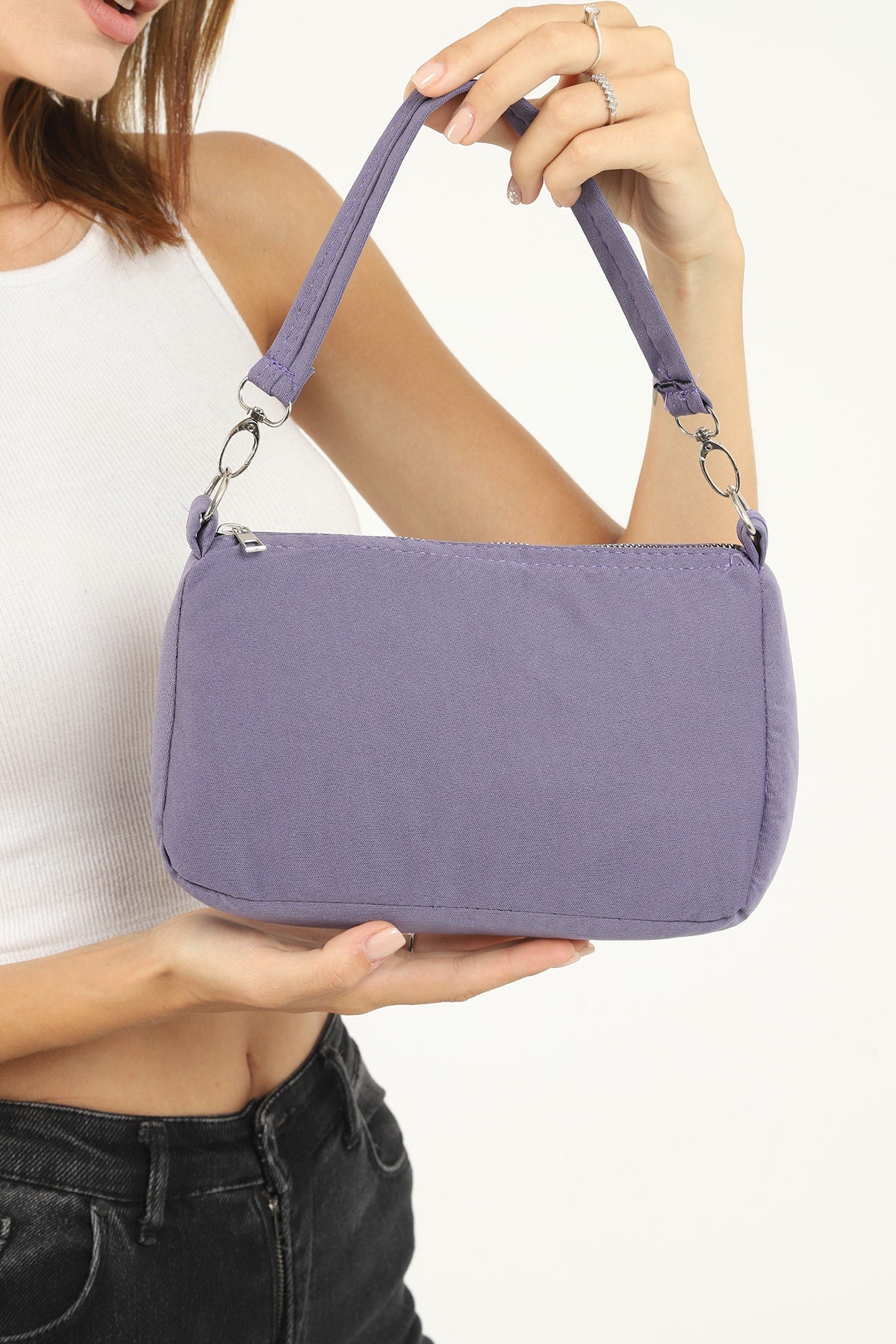 Lilac U16 Daily Sport Canvas Fabric Baguette Women'S Hand And Shoulder Bag U:23 E:15 W:7
