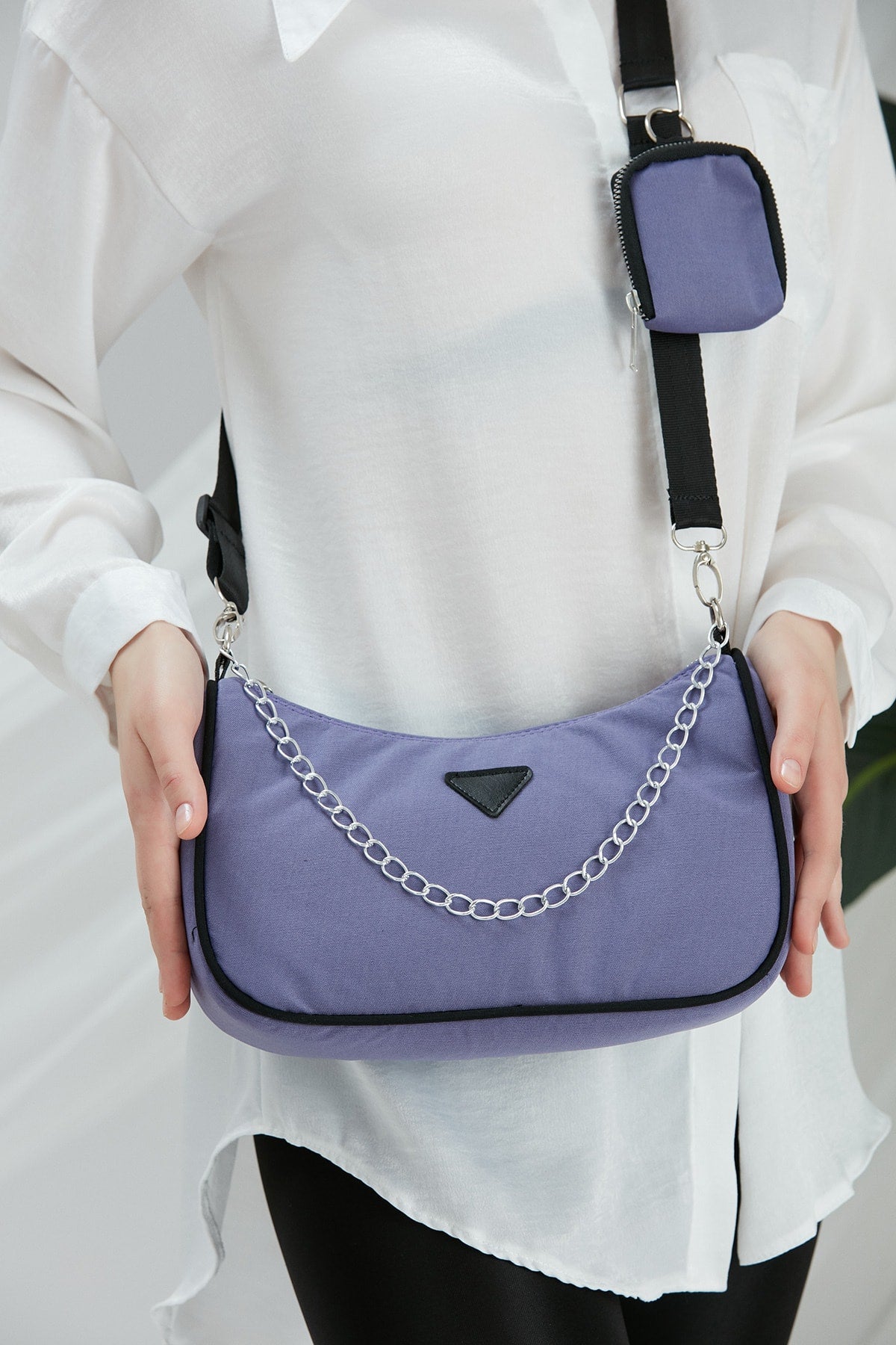Lilac U6 Women'S Cross Shoulder Bag With Chain Strap Detailed And Adjustable Strap Wallet B:12 E:27 G:1