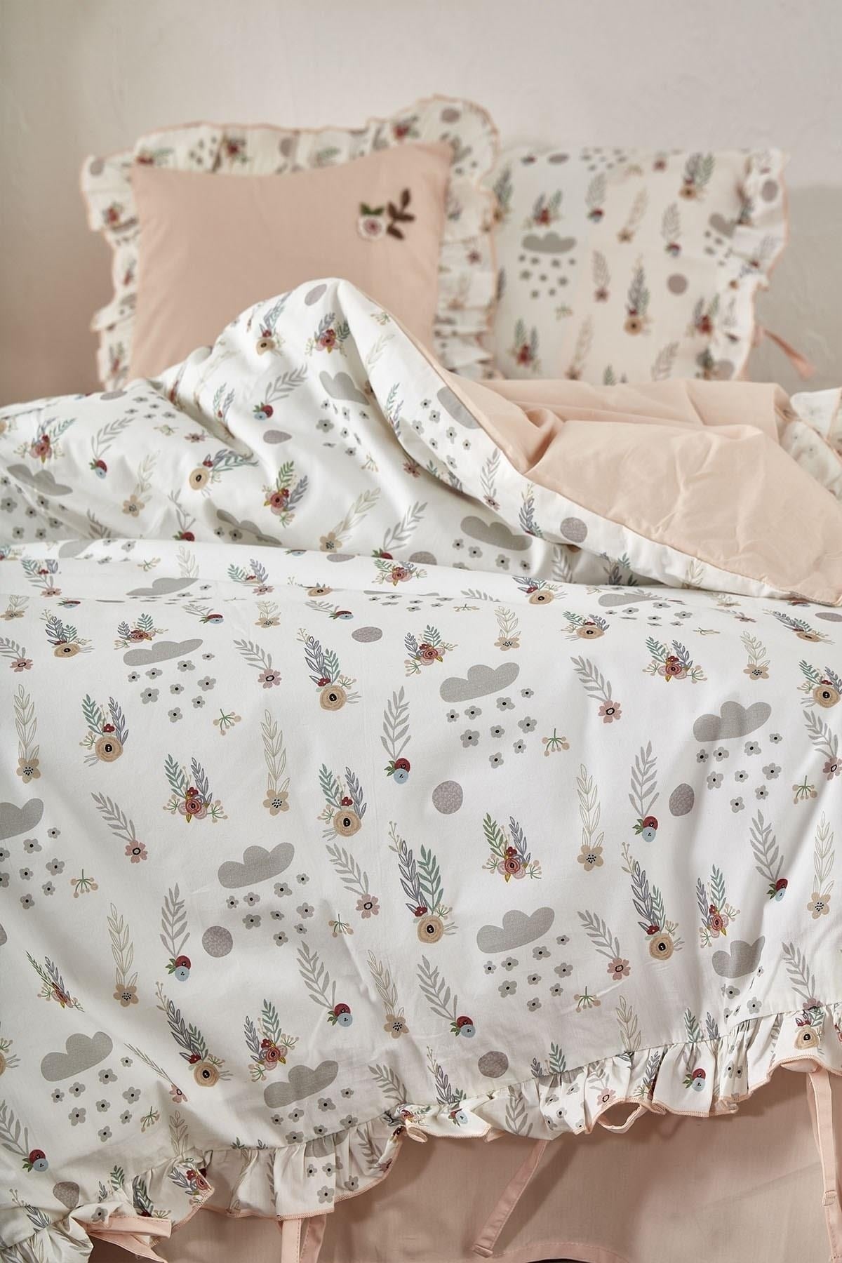 Lora Baby Girl Duvet Cover Set 100% Organic Cotton Hand Embroidered Printed 100X150 Cm