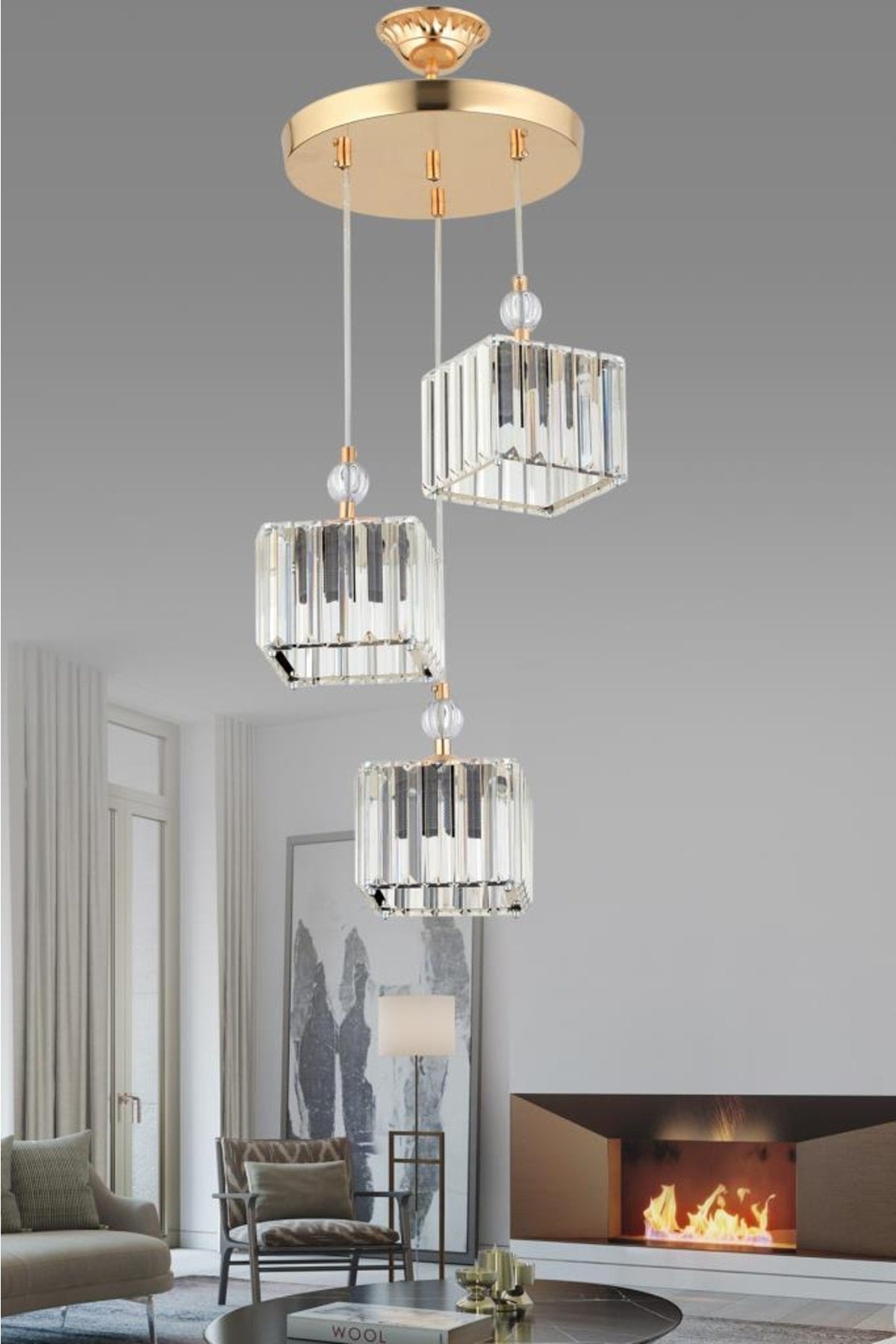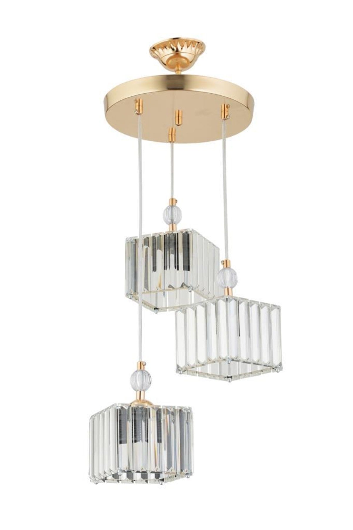 Maya 3-Piece Gold K-10 Crystal Stone Chandelier