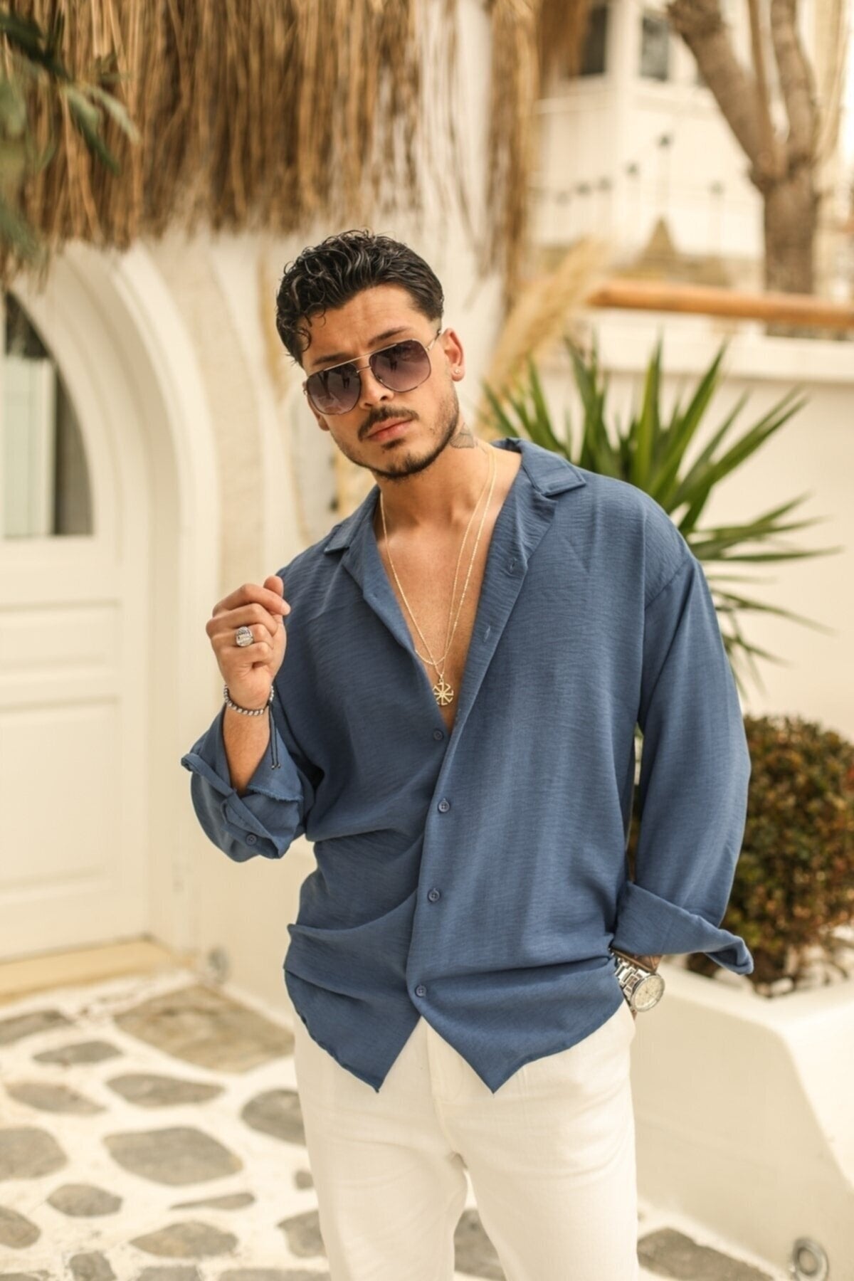 Men'S Saks Linen Loose Fit Oversize Loose Shirt