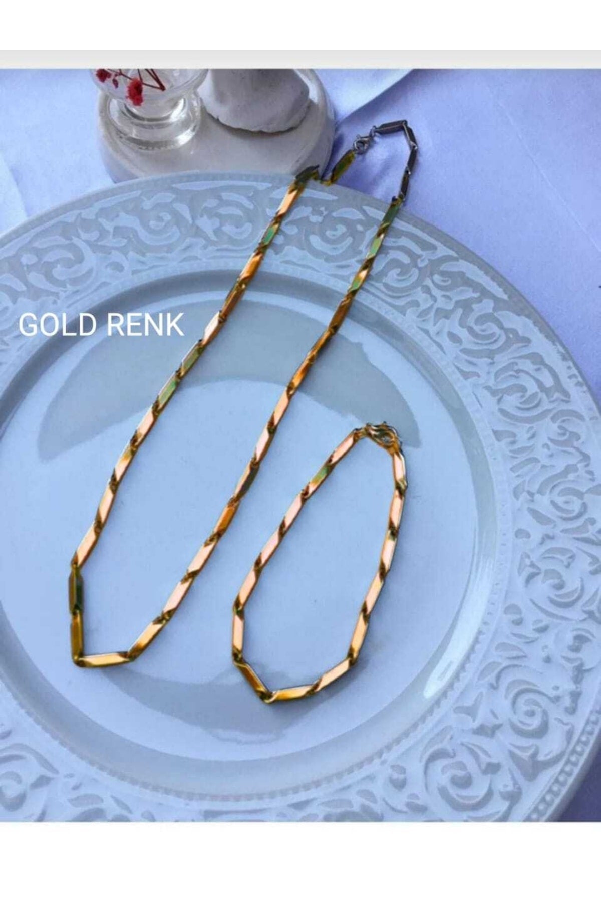 Men'S Steel Necklace And Bracelet Set Cube Triangle Model Chain