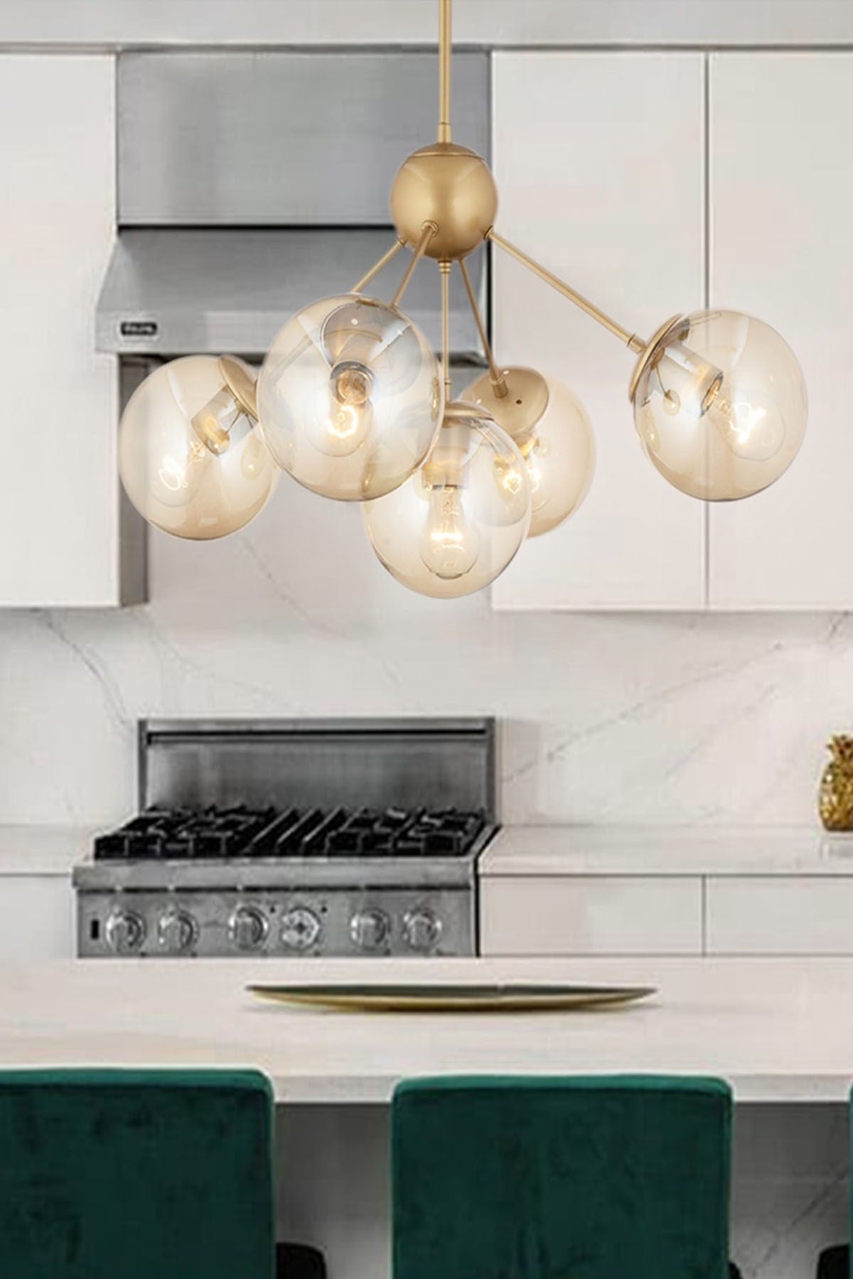 Meyo 5 Piece Antique Honey Glass Modern Young Room Bedroom Living Room Chandelier