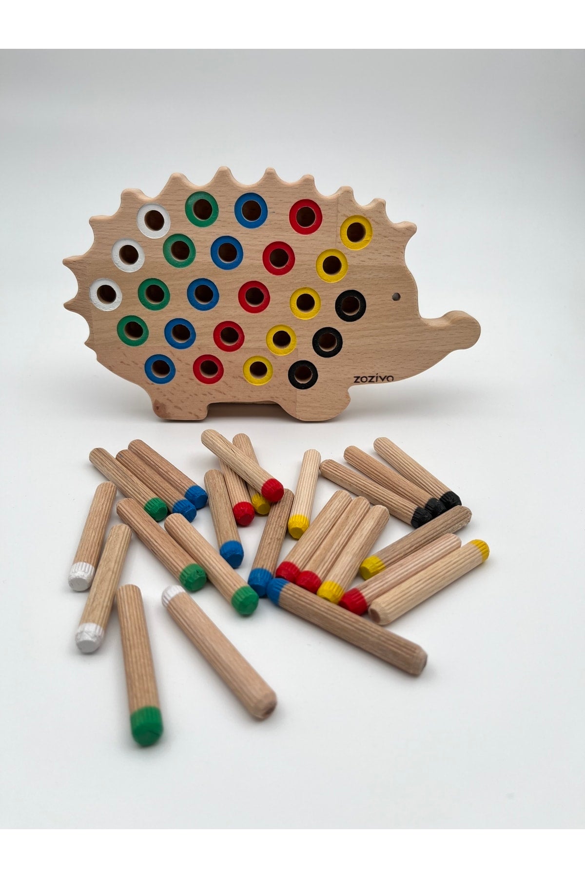 Montessori Educational Wooden Toy – Plug And Play Colorful Wooden Hedgehog Toy