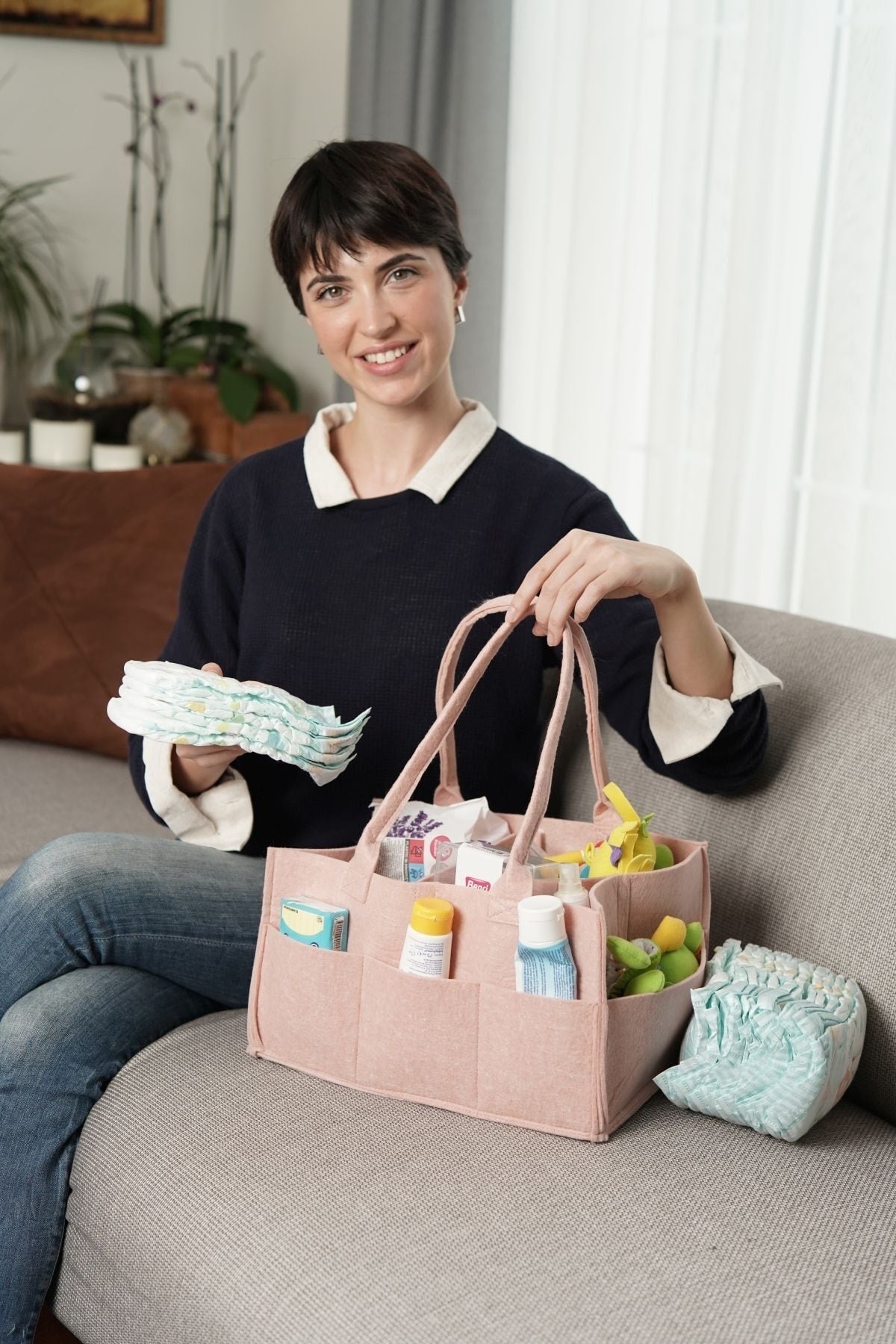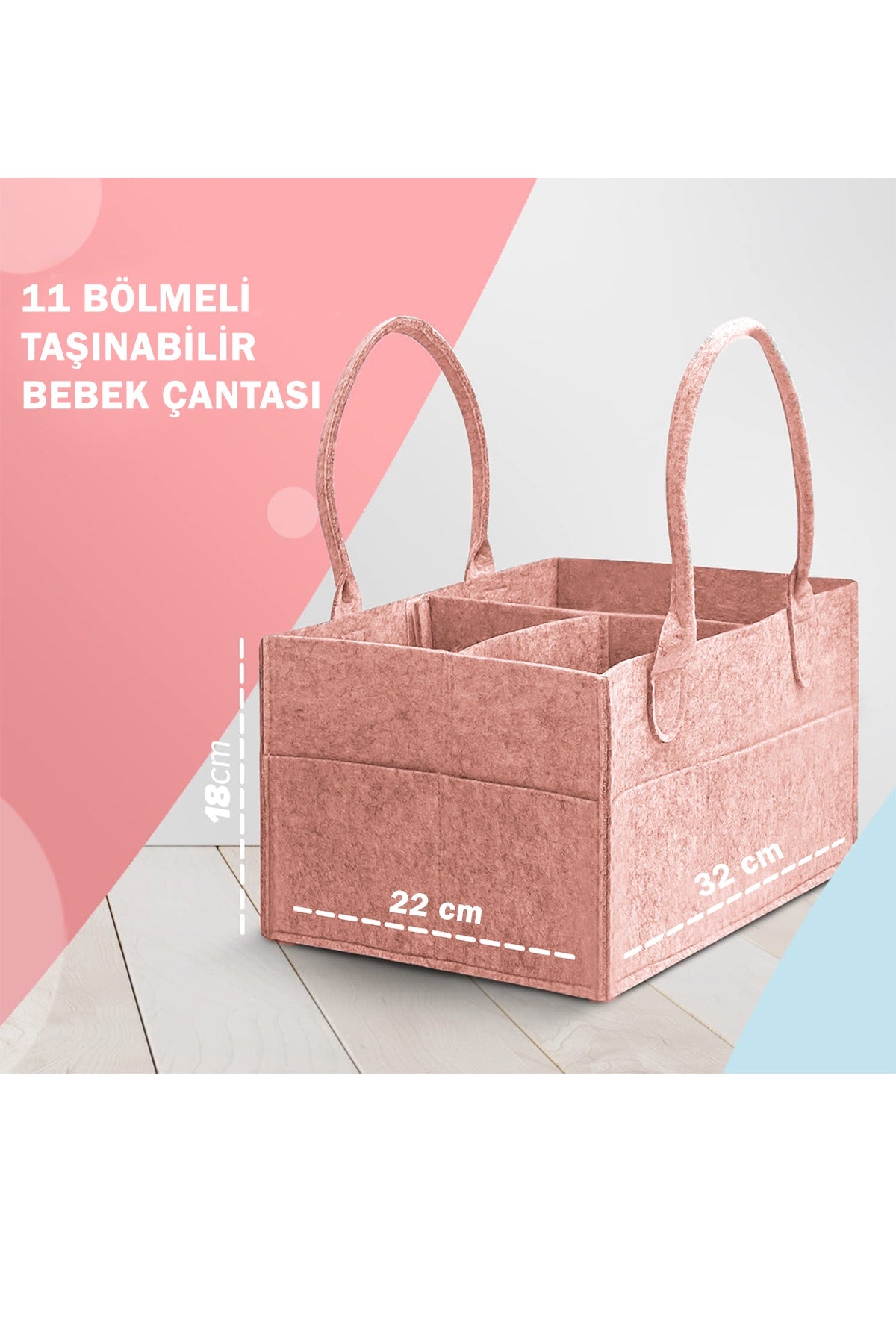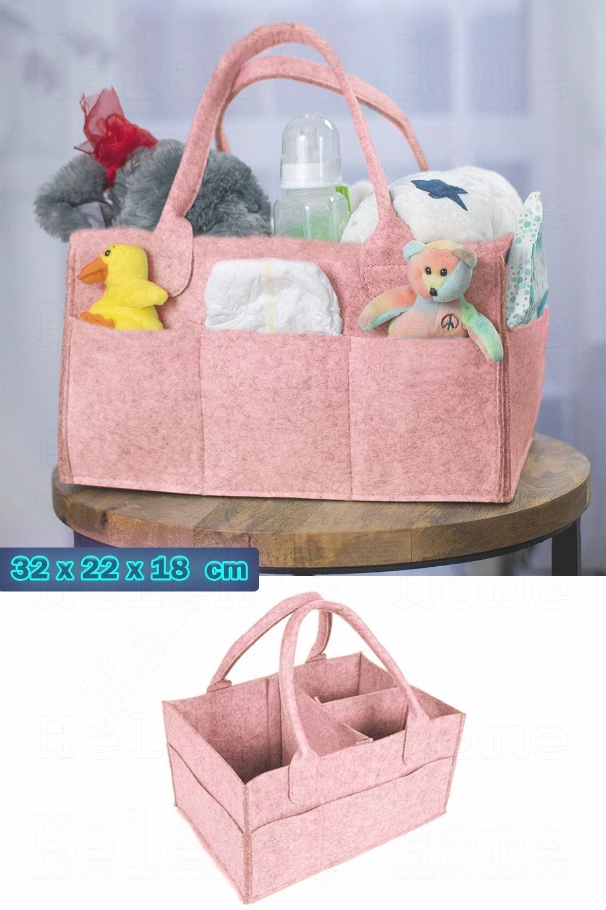 Mommy baby care bag diaper and wet wipes organizer changing organizer11 sections design -whether you narrow it or expand it with velcro inner compartments. you can easily remove and attach the velcro according to the product you want. it provides practical use with its seamed and wide side sections on the outside. it has double carrying handle. lightweight material - it is extremely light and useful. it does not burden you like heavy bags, it is very easy to carry. it is made of durable 4 mm polyester thick felt. multi-purpose use -you can place baby diapers, wet wipes, feeding bottles, creams, toys, etc. as you wish. features -product size: 32 cm x 22 cm x 18 cm. stylish design in color.helen's home manufacturer's guarantee -you can safely use the portable baby bag of our helen's home registered brand for years. our portable baby care bag comes with a manufacturer's warranty! Improved version for clearer understanding and better search visibility. Suitable for users seeking detailed and reliable product information.