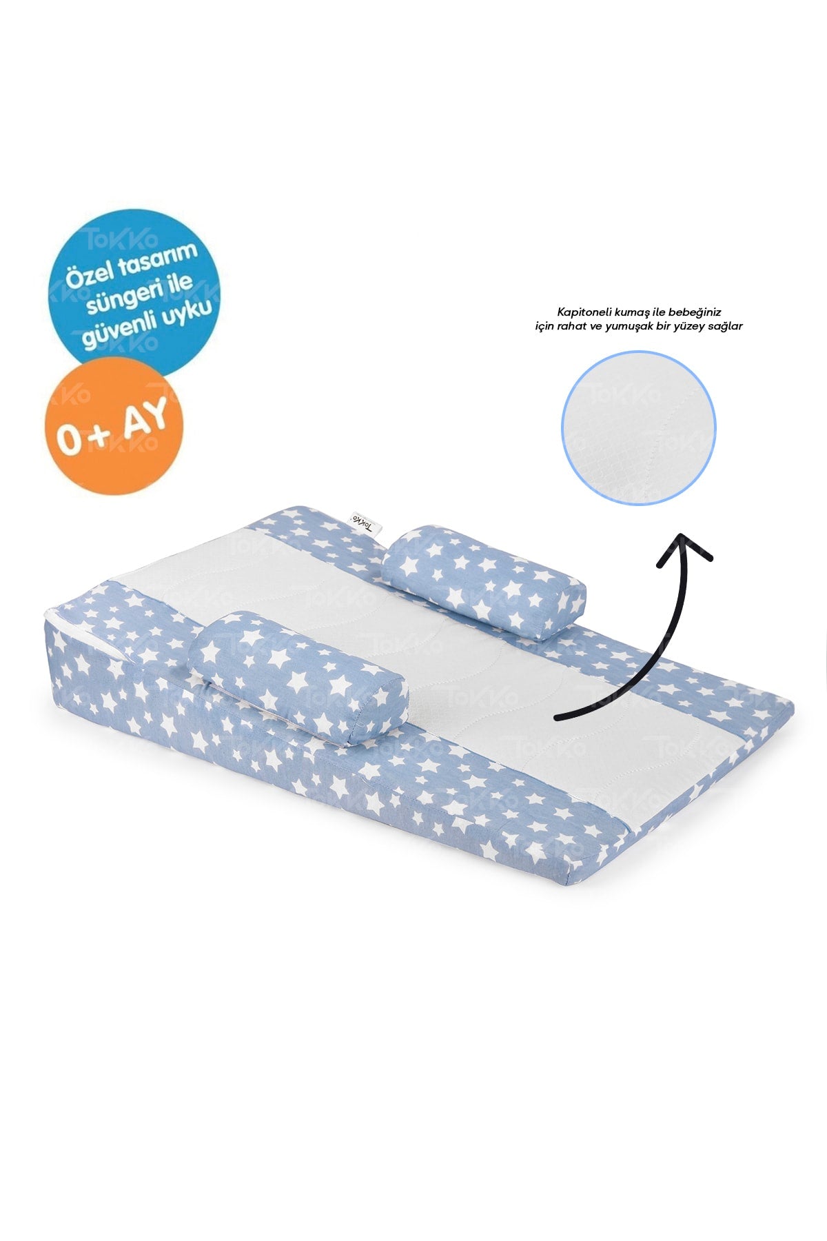 Multi-Function Washable Cover Orthopedic Baby Reflux Mattress-Degassing Baby Reflux Pillow Blue
