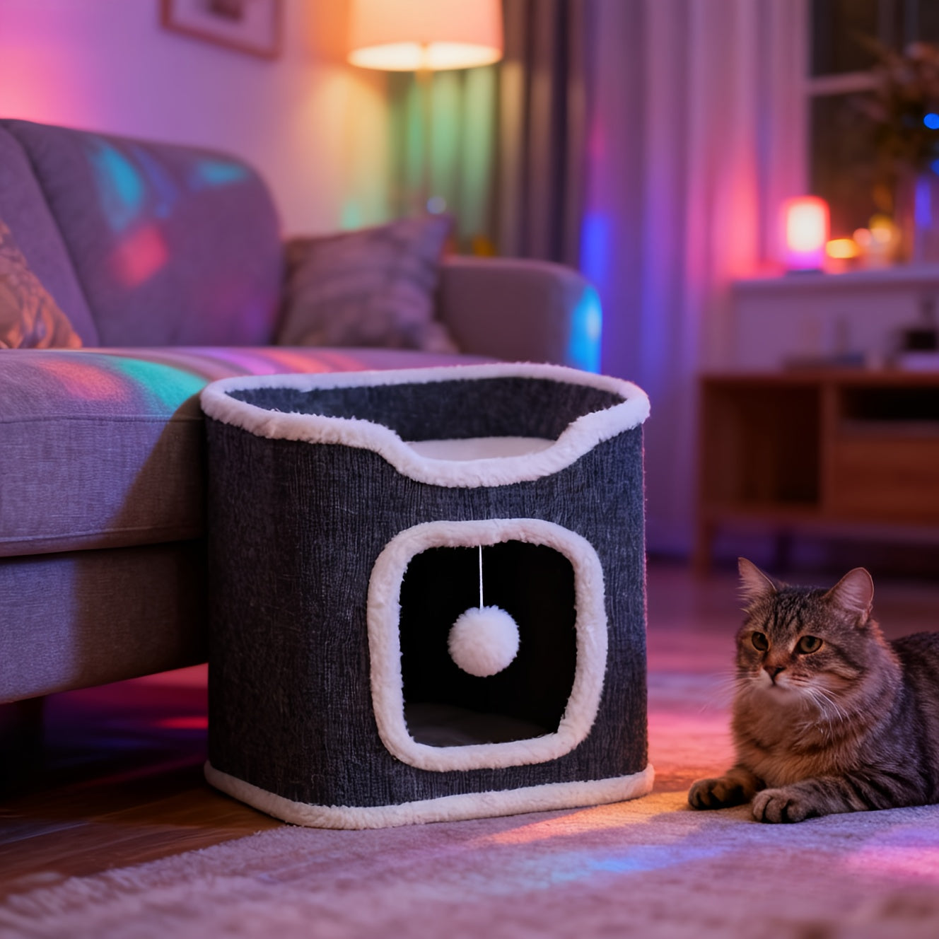 Multi-level Foldable Cat Tree Towers For Indoor - Cat Furniture, Interactive Hanging Toy Ball, Soft And Cozy Top Bed, Cama Para Gato, Cat Tree House, Cat Hideaway, Scratch-resistant Design,