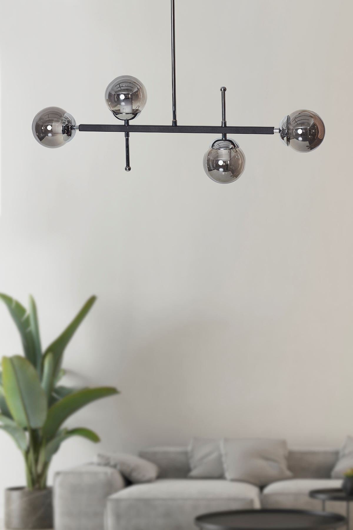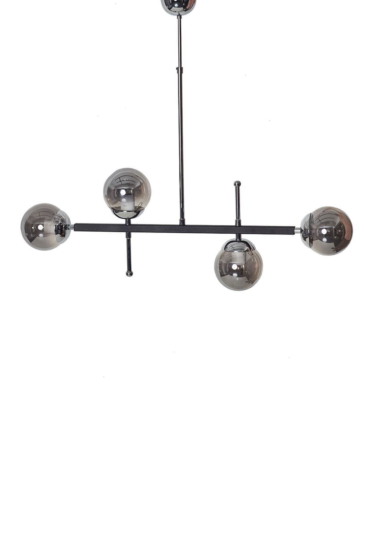 Optical 4-Piece Chrome Black Metal Body Smoked Glass Design Luxury Pendant Lamp Chandelier