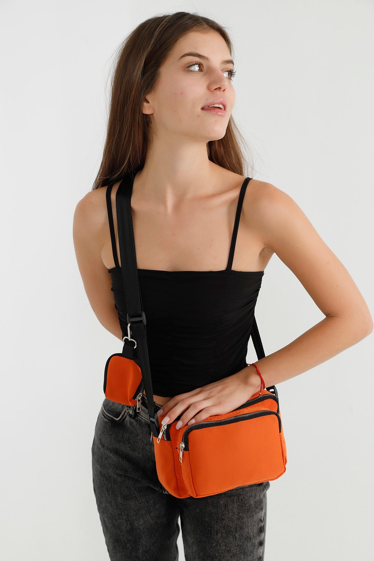 Orange U4 Canvas Women'S Cross Shoulder Bag With 2 Compartments And Wallet With Adjustable Strap B:17 E:22 G:1
