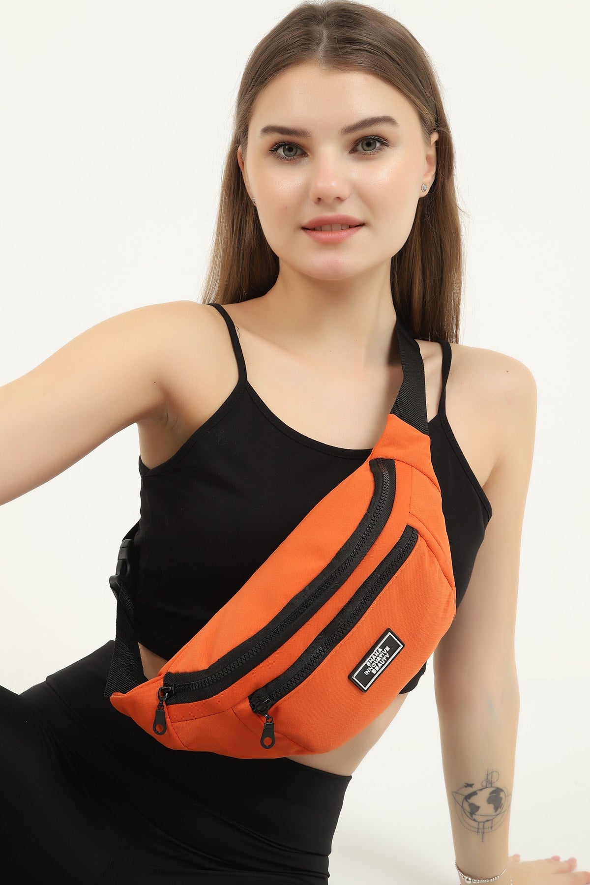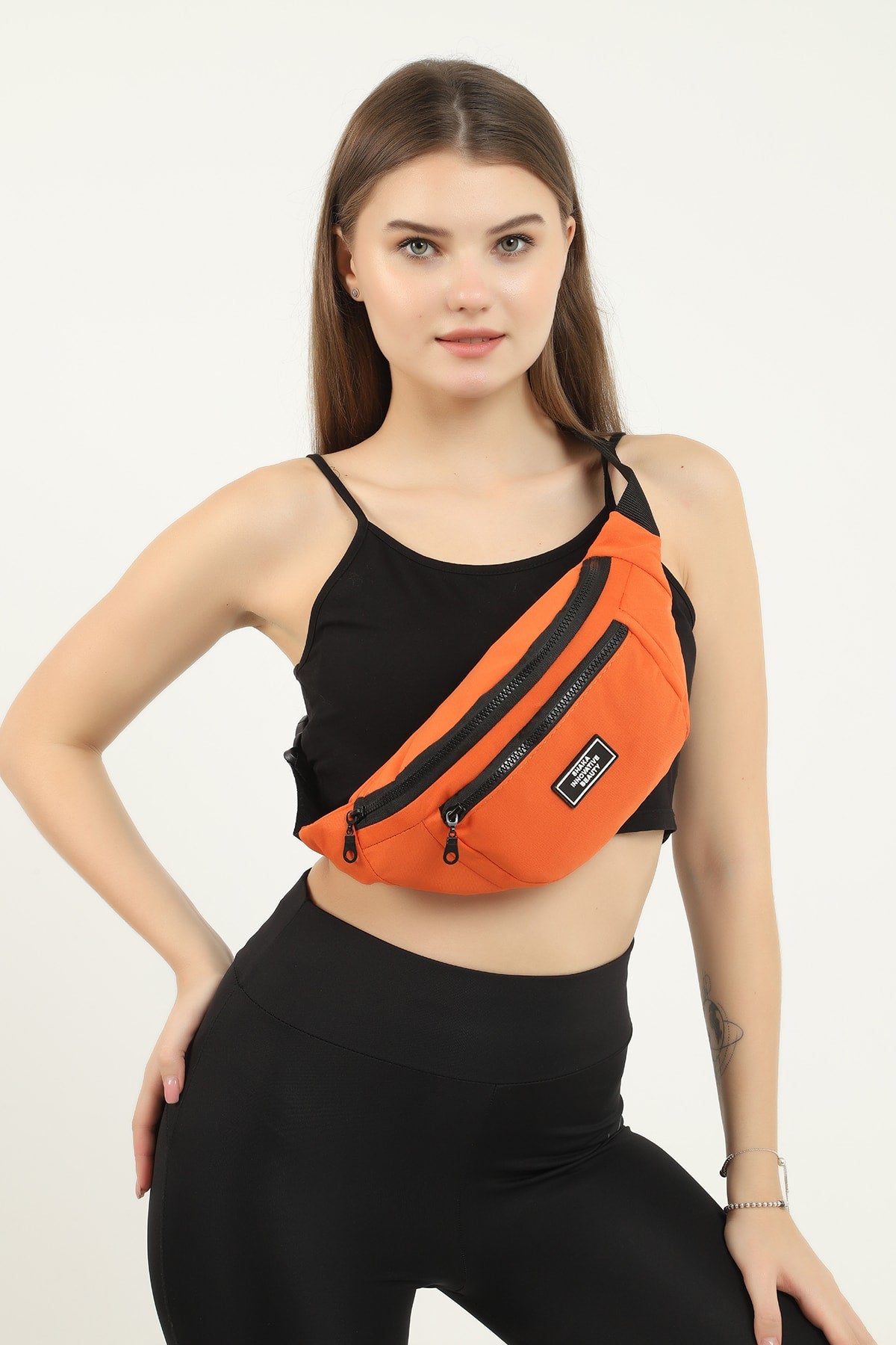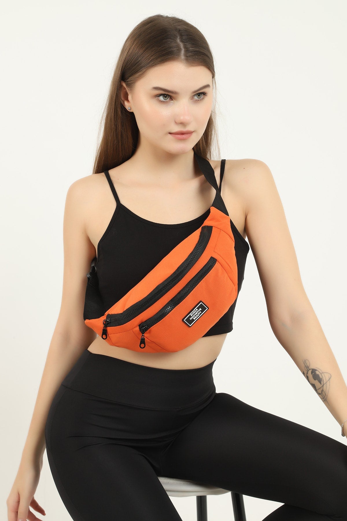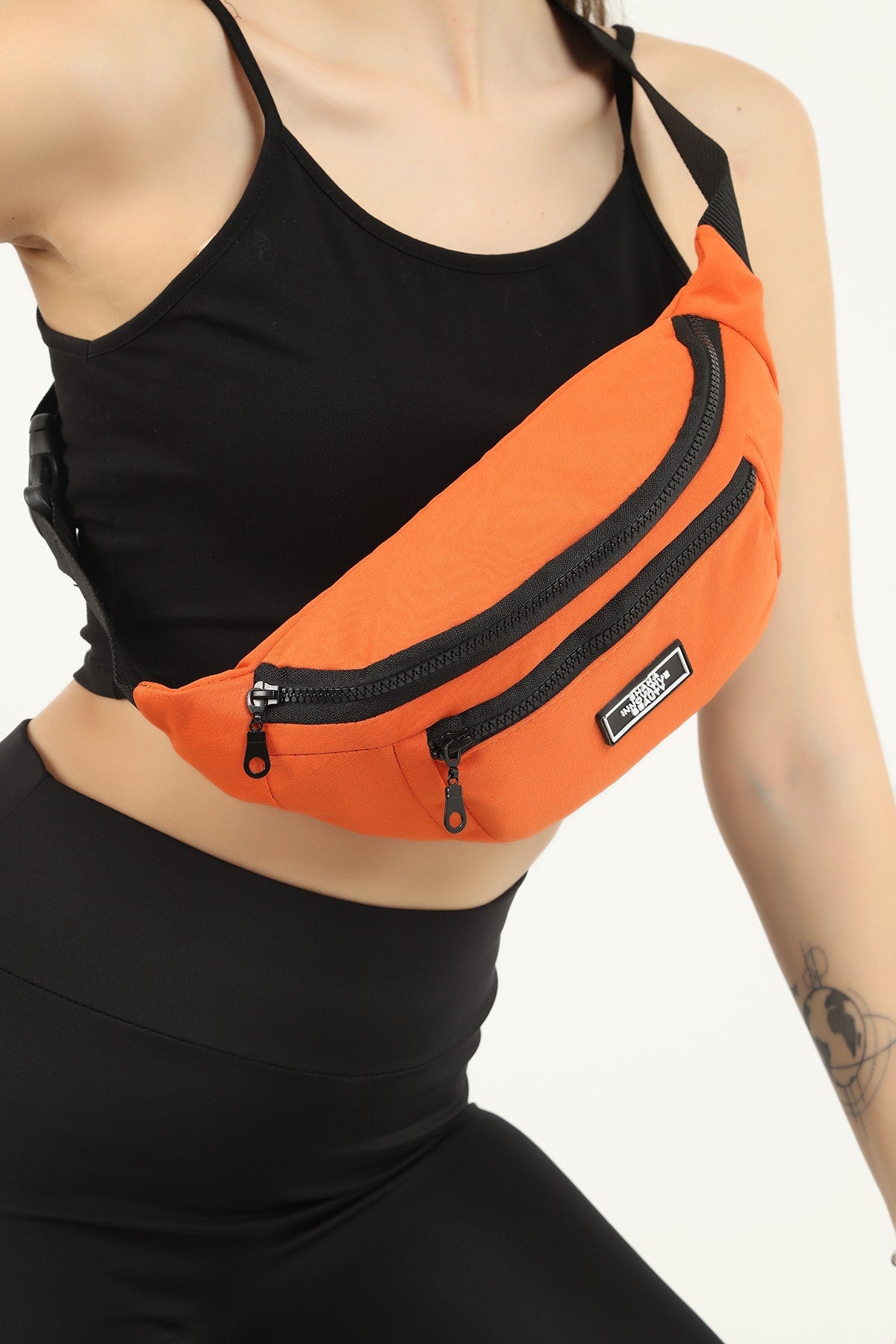 Orange U8 2-Compartment Adjustable Cross Strap Canvas Unisex Waist And Shoulder Bag E:38 B:17 G:7
