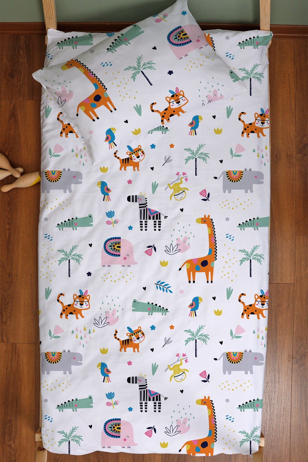 Organic Montessori Duvet Cover Set - Iconic Series - Colorful Geometric Animals