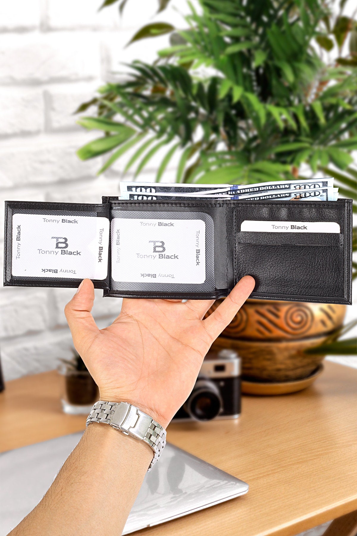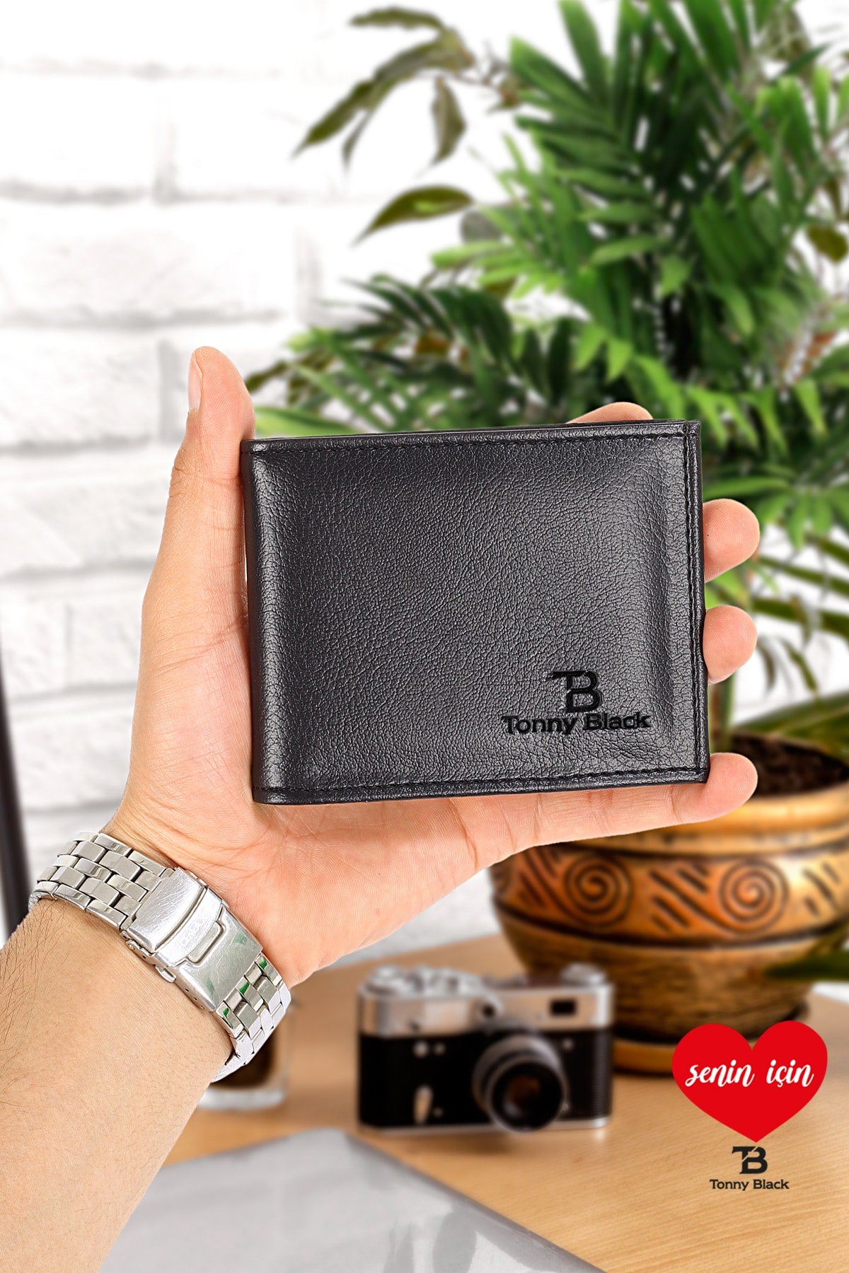 Original Men'S Black Stylish Leather Wallet With Gift Box Card Holder And Paper Money Compartment Card Holder Wallet