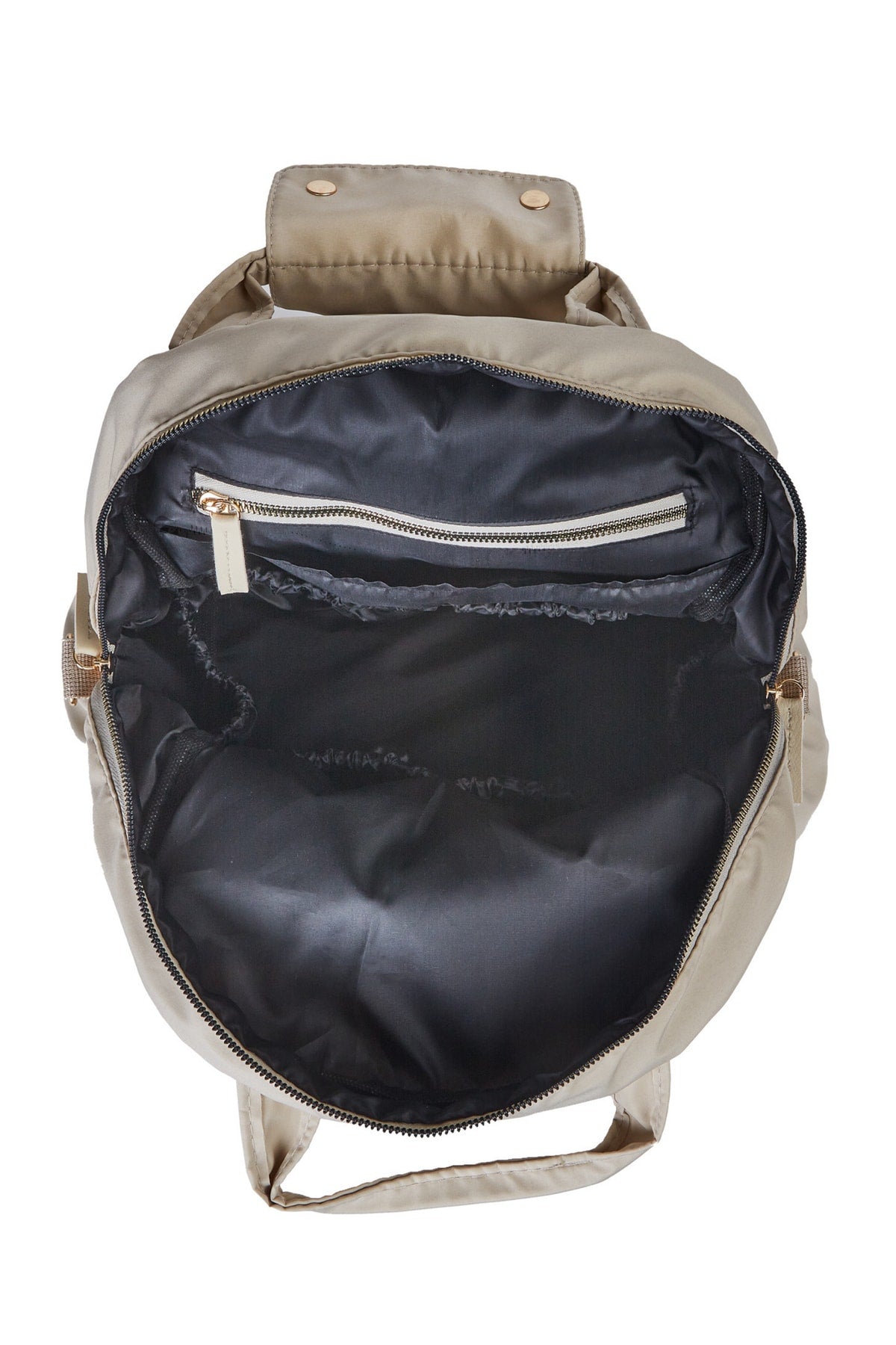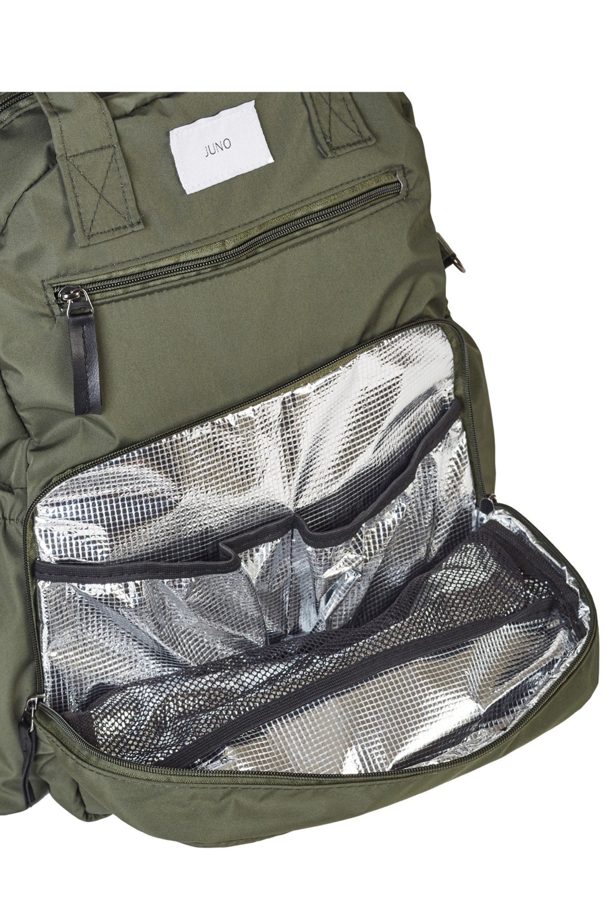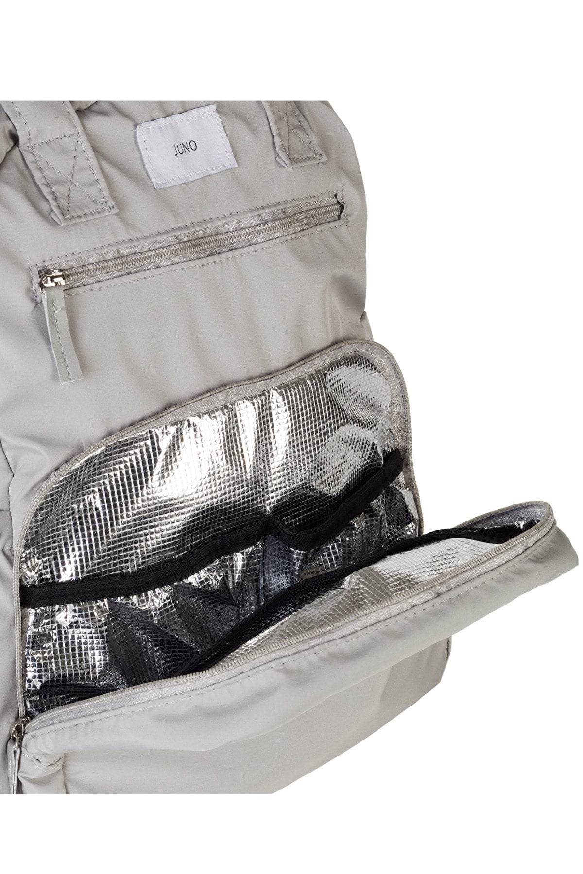 The main compartment has 1 compartment with zipper, 1 compartment without zipper, 6 compartments with elastic. front thermal section with 2 elastic and 1 mesh pocket. it has 2 zippered sections on the front. there are 20 cm deep elastic pockets on both sides. there is a zippered section on the back where the back straps can be stored. the package includes 2 snaps for baby carriage hooks. waterproof fabricextra light designcolor: beigedimensions: 30 x 40 x17 cm Improved version for clearer understanding and better search visibility. Suitable for users seeking detailed and reliable product information.
