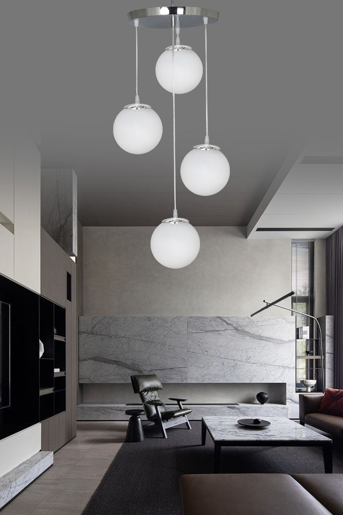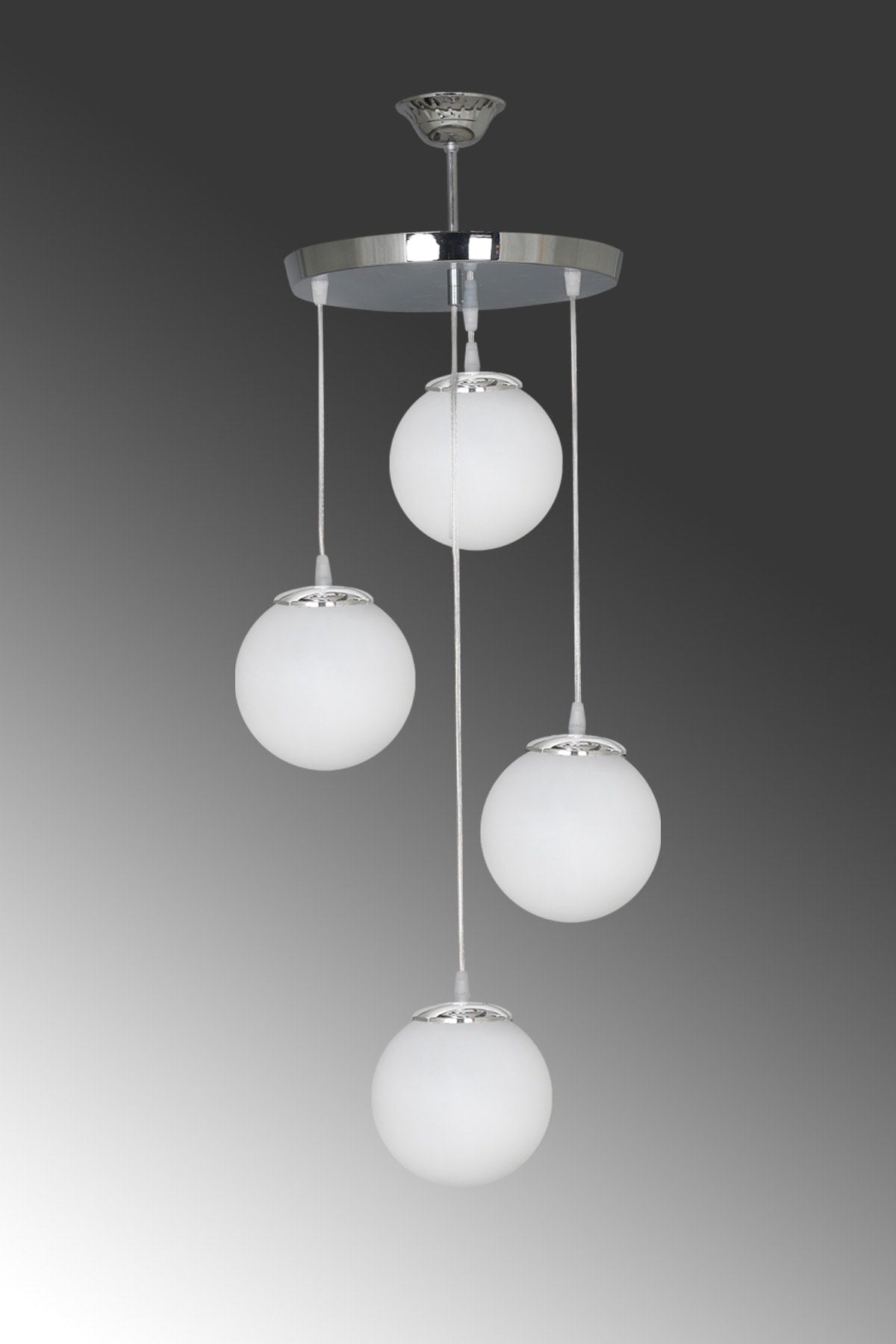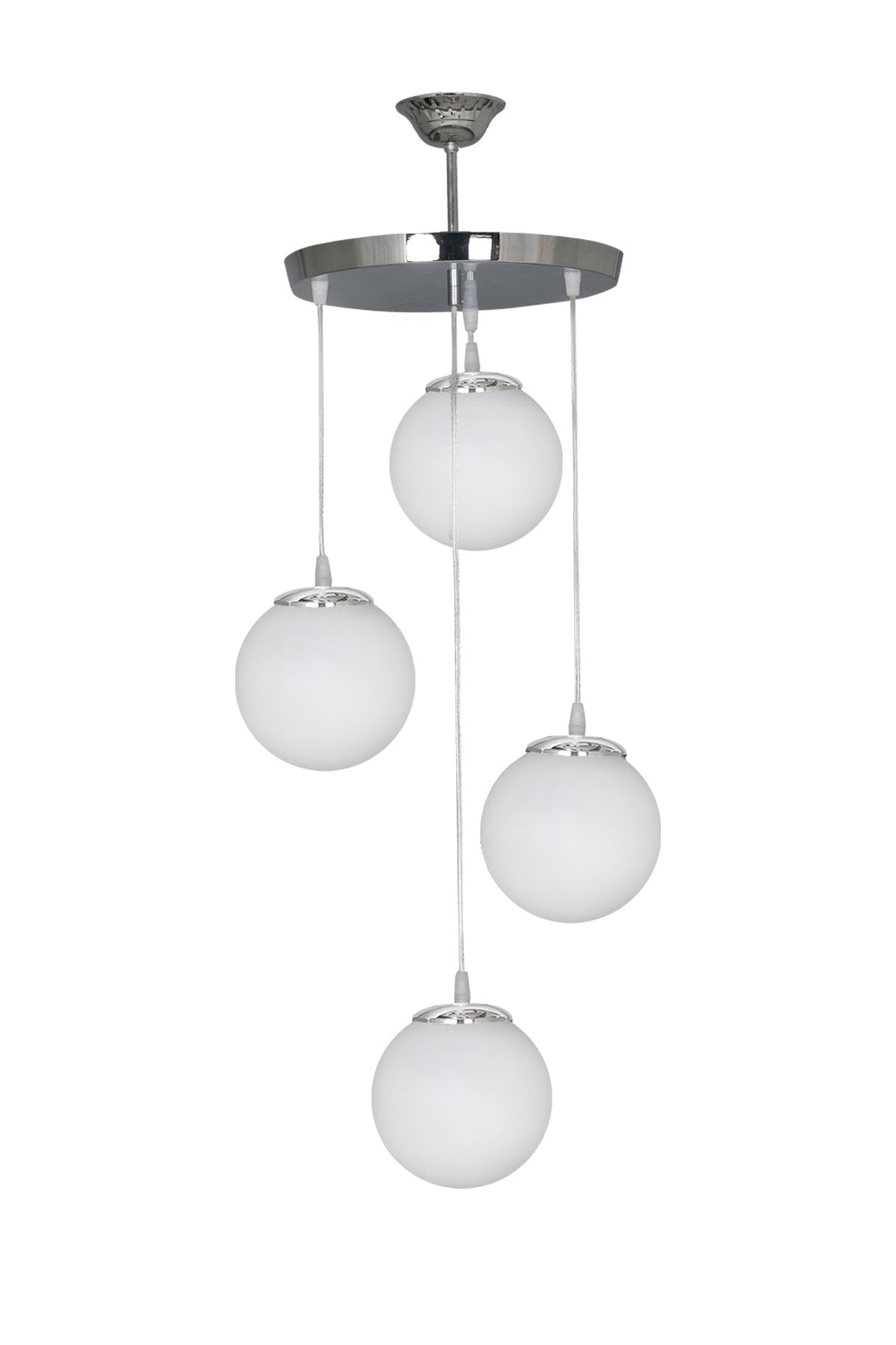 Pendant Lamp Tray Silver 4-Piece White Glass Chandelier