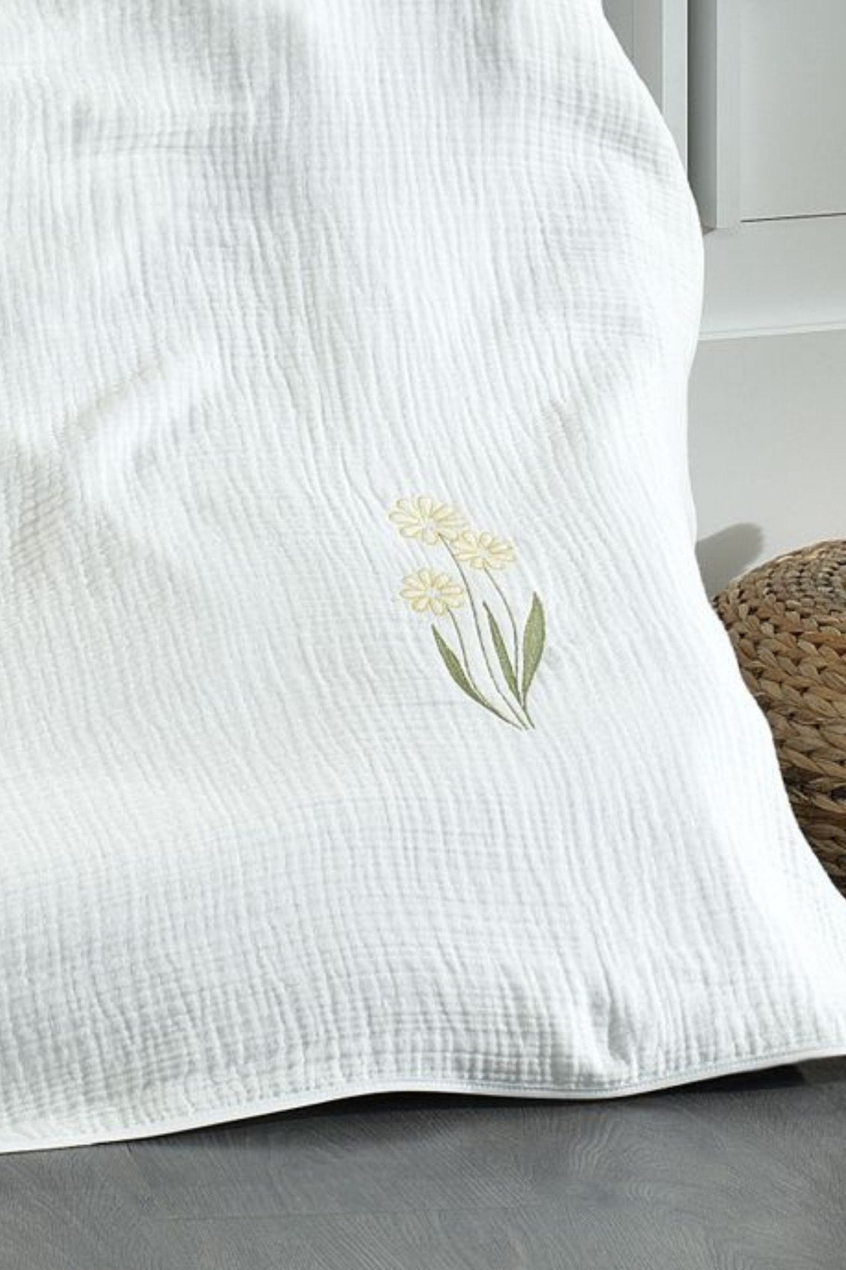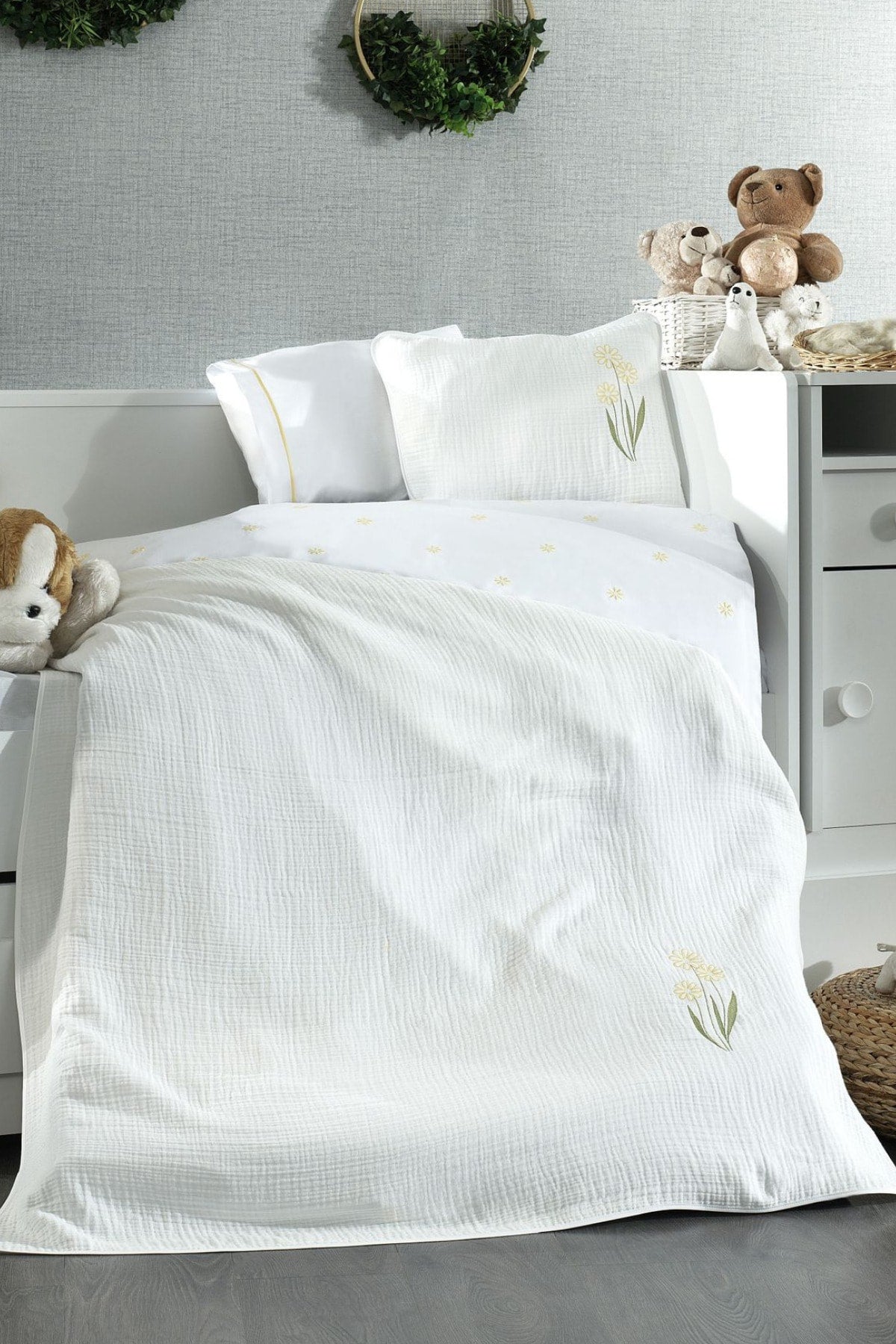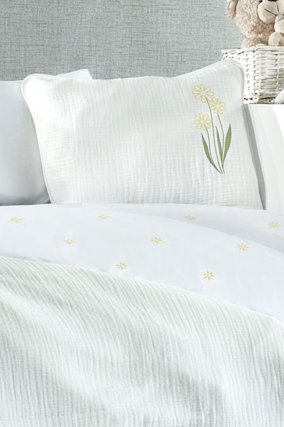 Piece Muslin Covered 100% Cotton Daisy Patterned Fairy Tale White Baby Duvet Cover Set