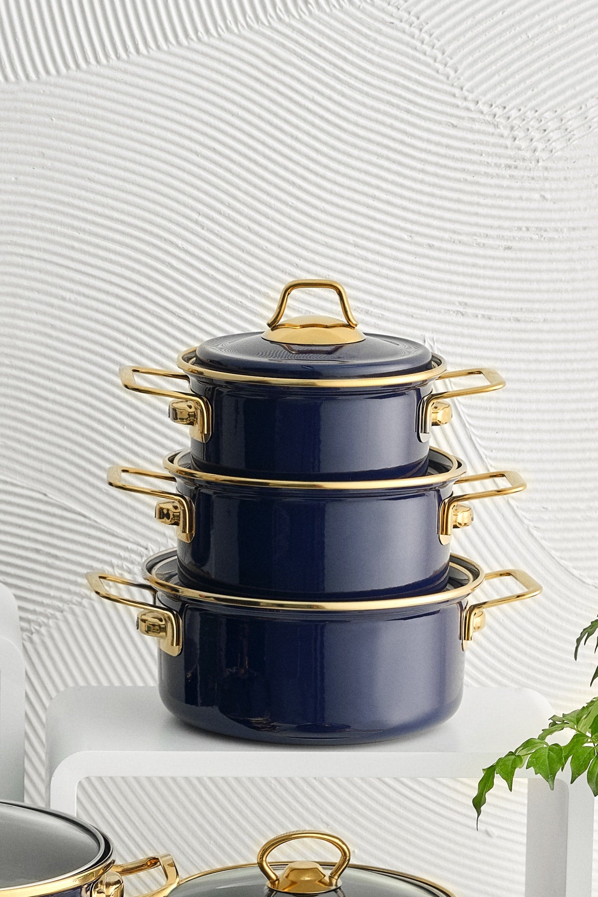 Piraye Enameled 6 Piece Cookware Set Navy Blue