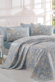 Ensemble de piquées imprimées bleu en toile unique