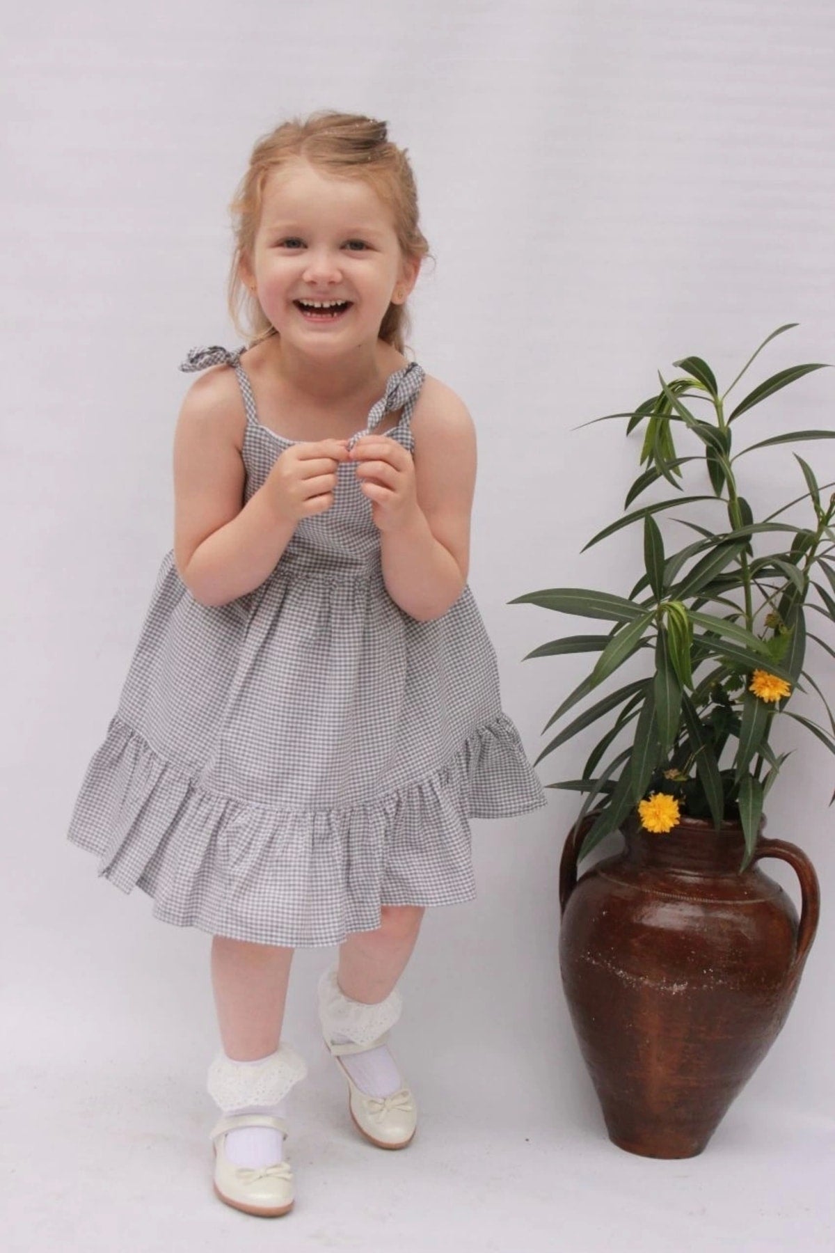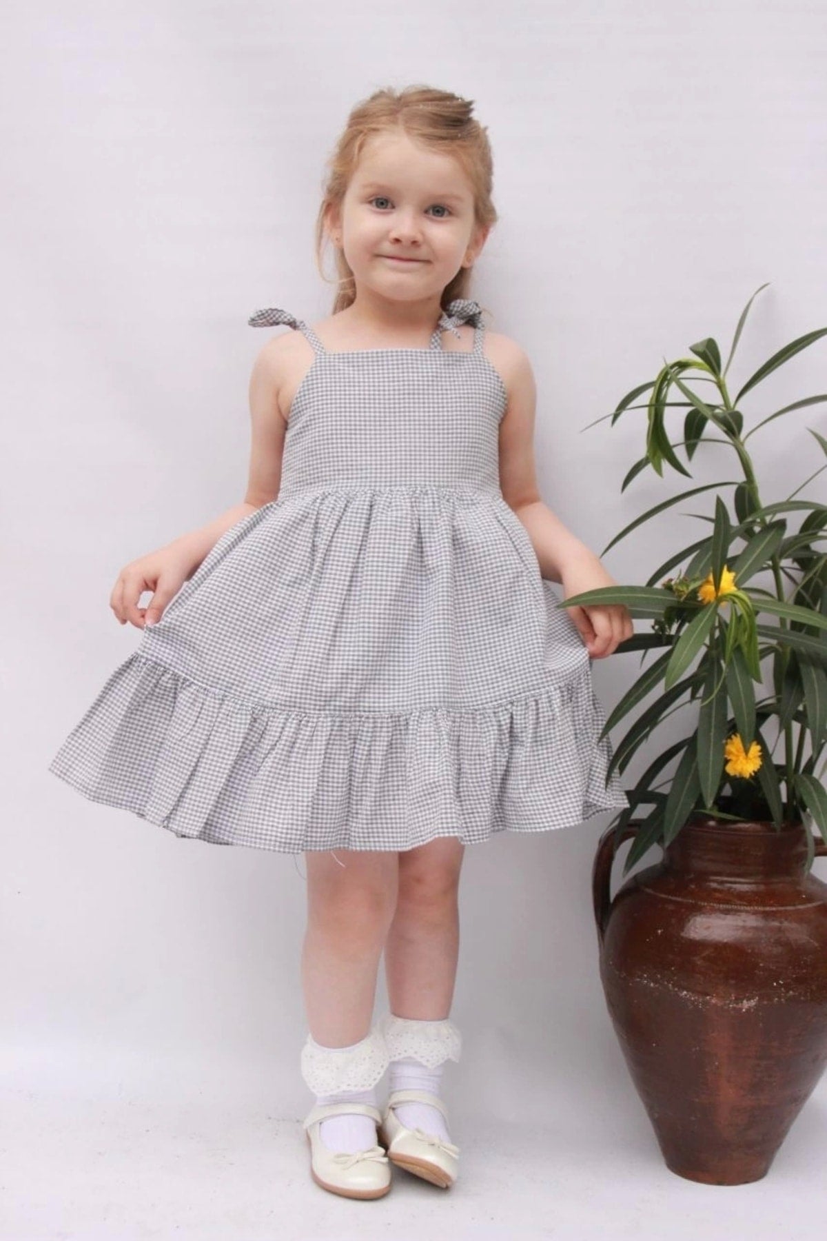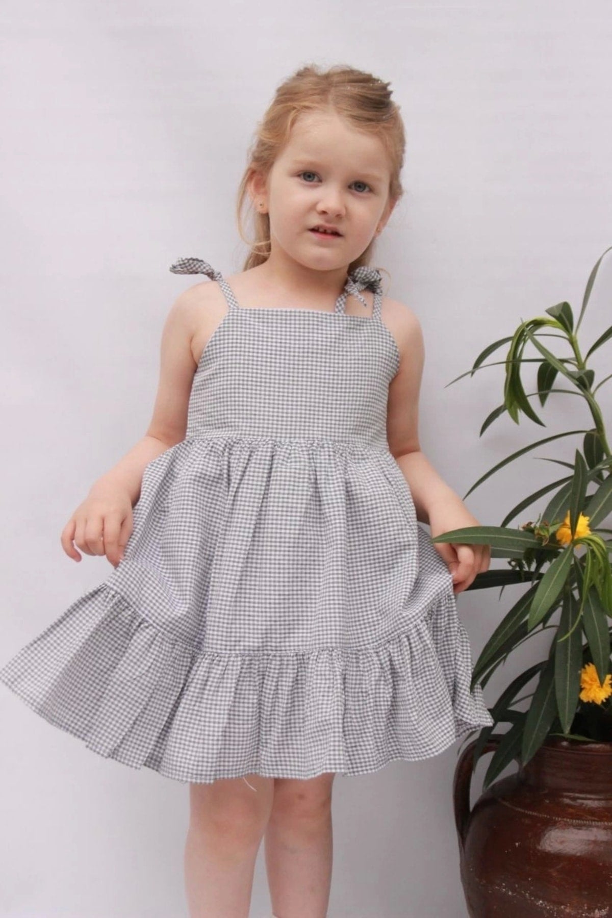 Rope Strap Girls' Check Lined Summer Dress