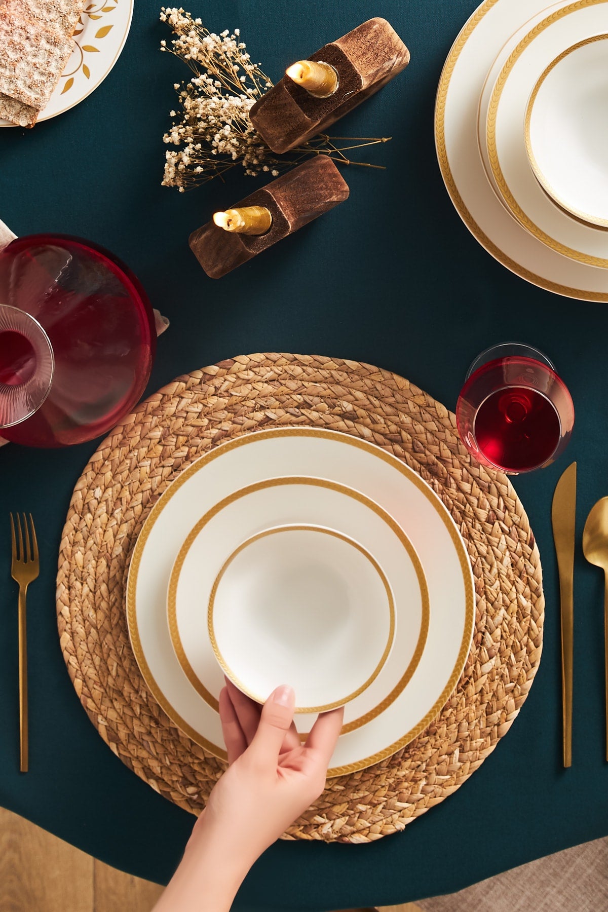 Roseanne Gold 24 Pcs Porcelain Dinnerware Set For 6 Persons