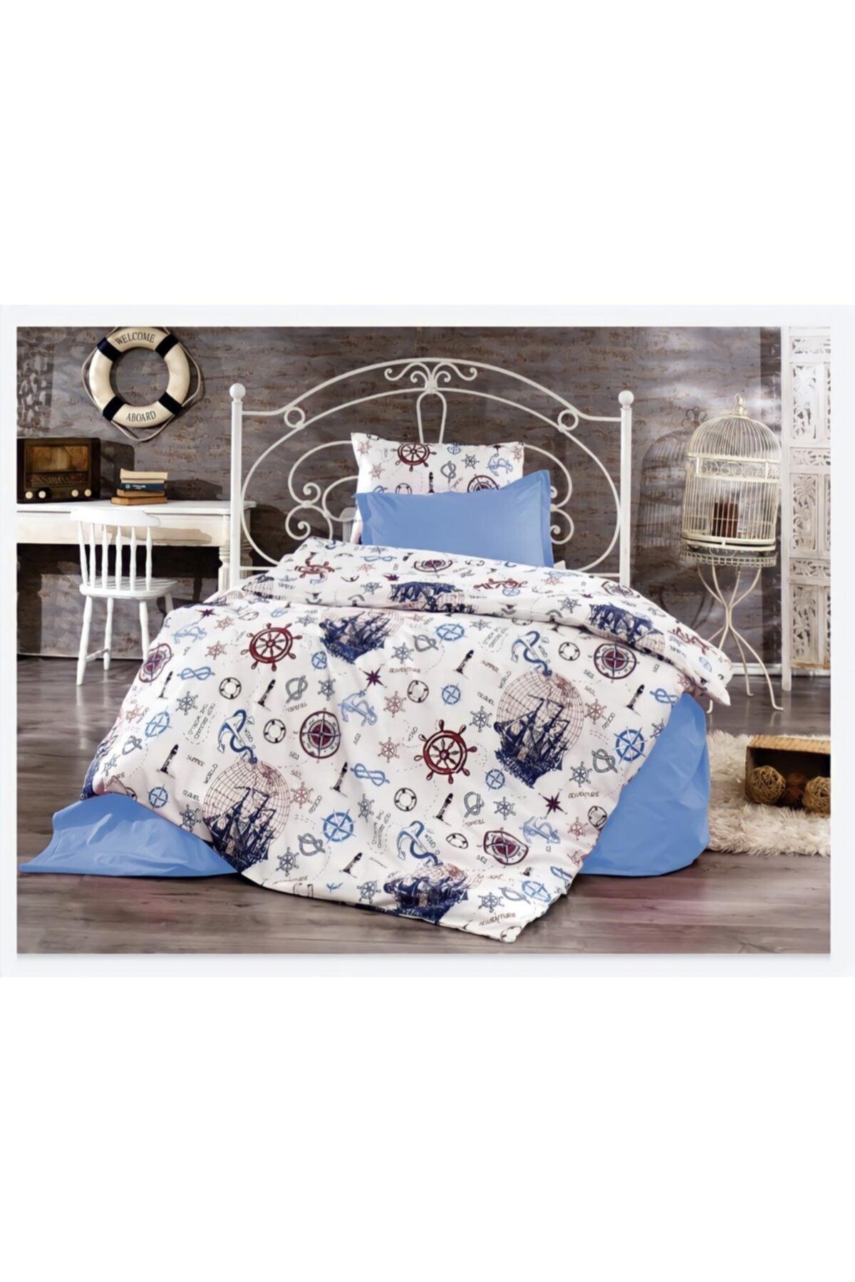 Ensemble de couvercle de couette en lin à lit élastique modèle de navire