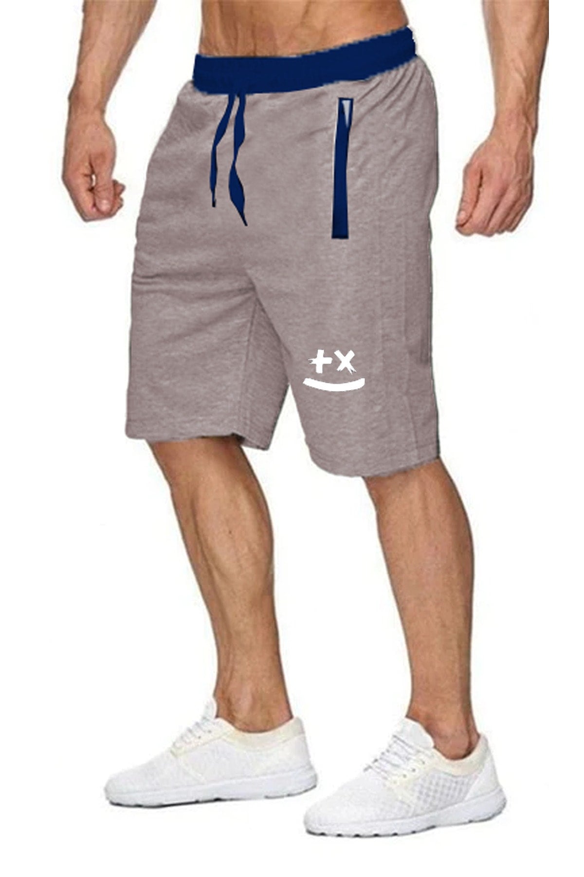 Smile Printed Navy Blue Belt Zippered Sports Shorts