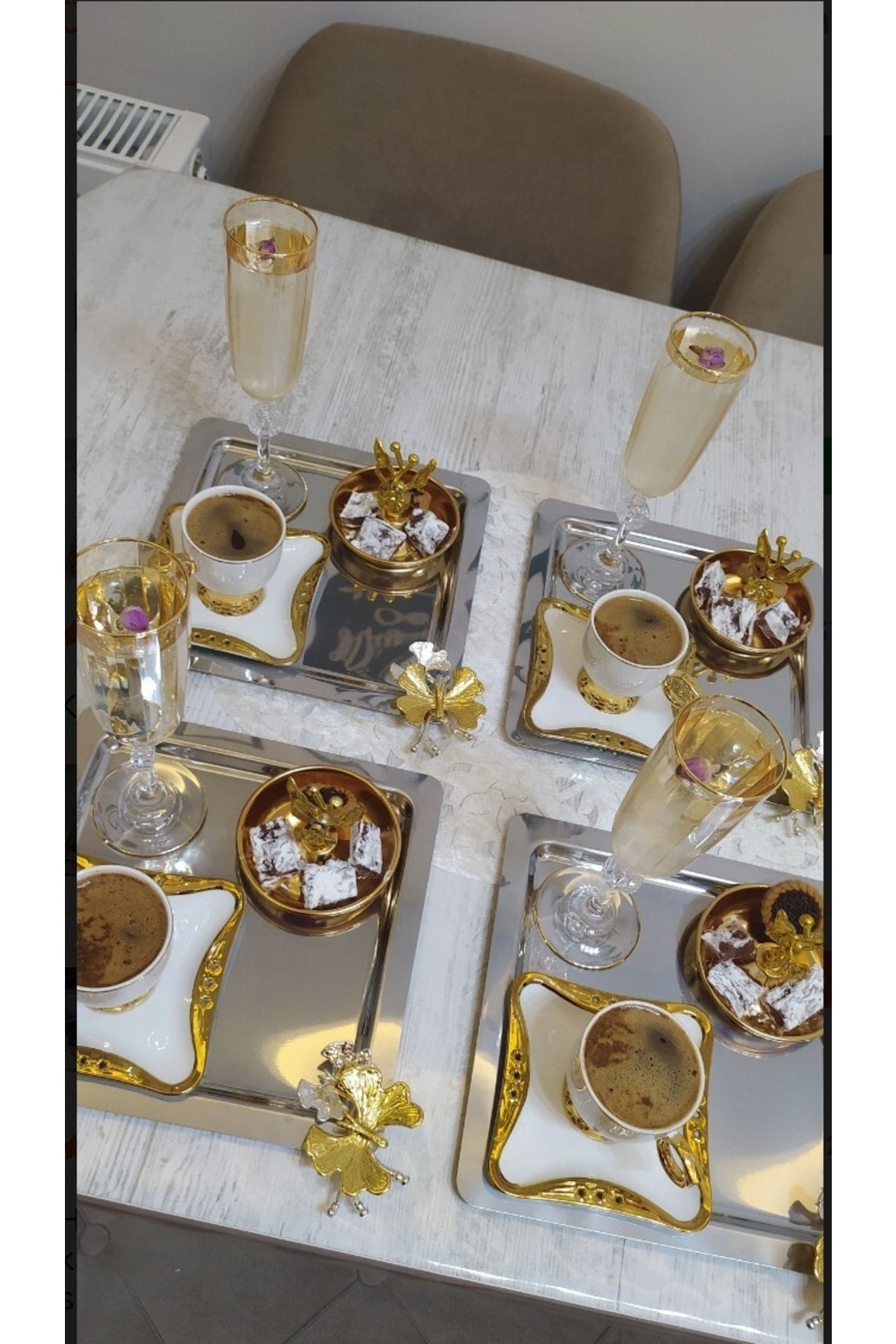 Stainless Steel Square Model 6 Coffee Tray With Butterfly Accessories Luxurious Presentation
