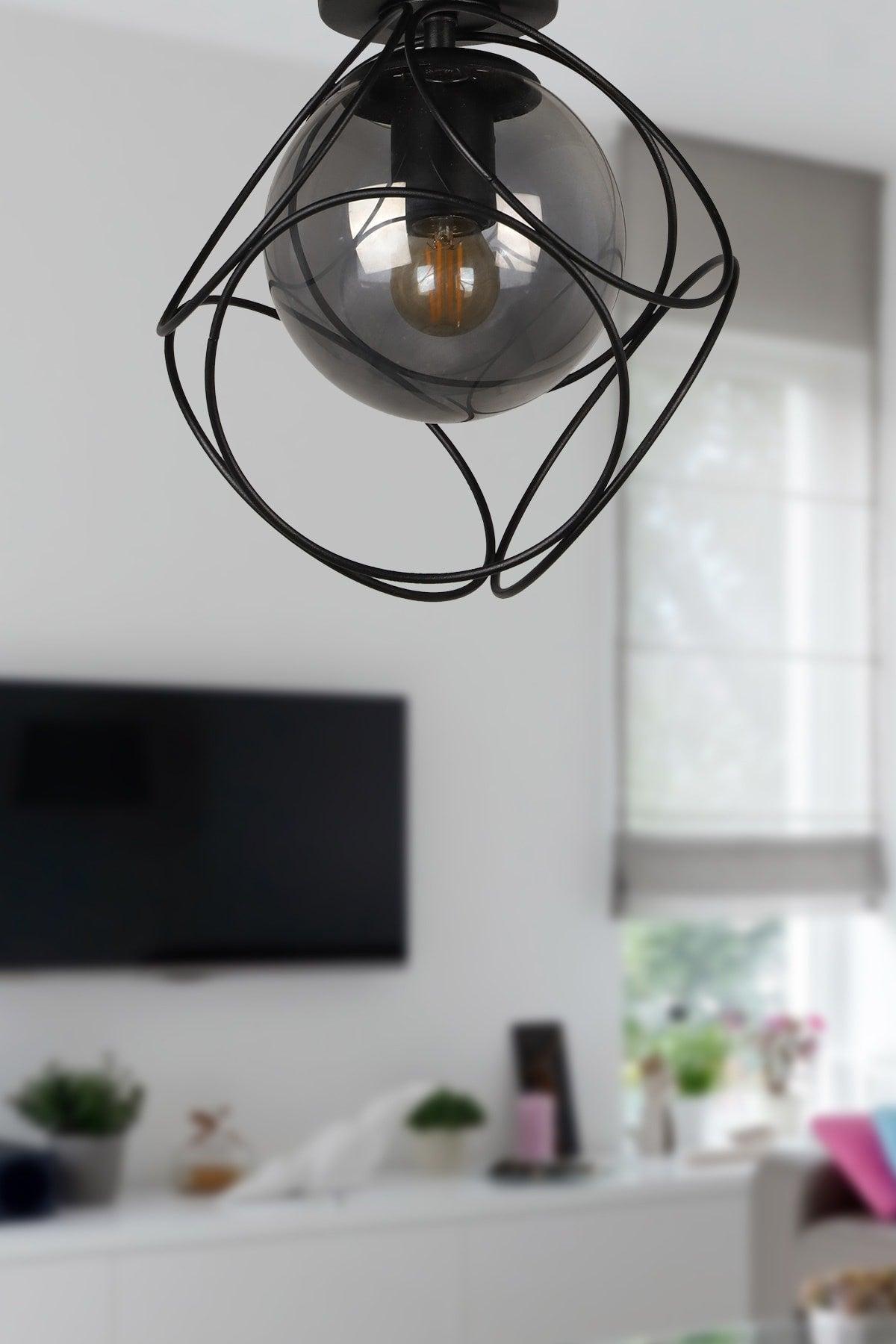 Chandelier de plafond en verre fumé en noir simple