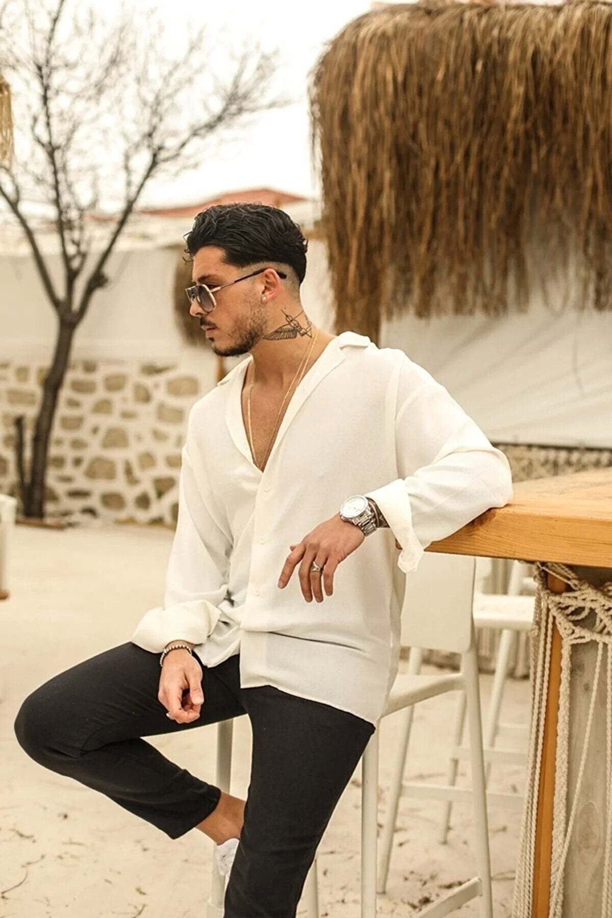 Textured Oversize Shirt Textured Oversize Shirt Navy