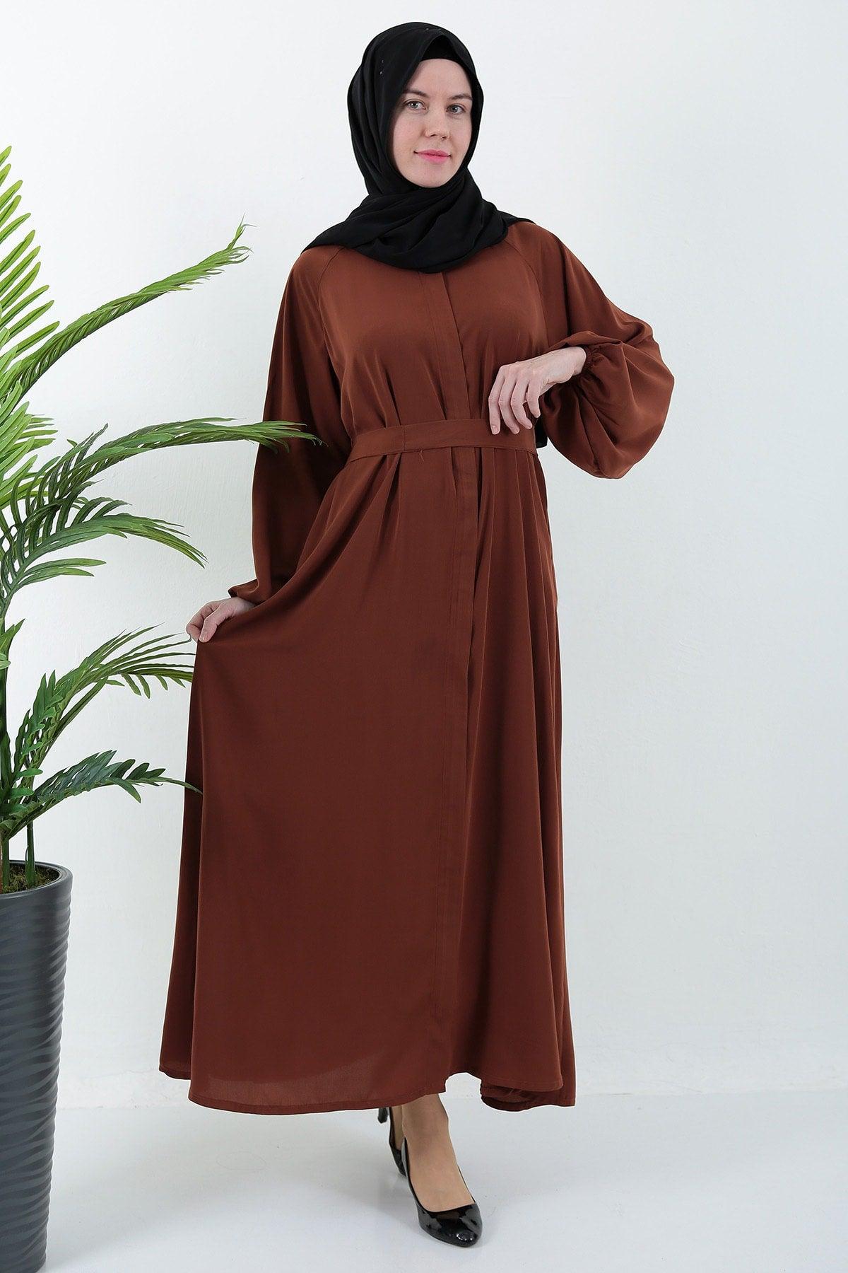 Model's measurements: height: 1.78, bust: 85, waist: 72, hip: 96, size: 38item length: 143 tile colored zippered zippered belted abaya with pocketproduct's fabric: medina silkmade of breathable fabricour products are produced by marquant.hijab abaya Improved version for clearer understanding and better search visibility. Suitable for users seeking detailed and reliable product information.